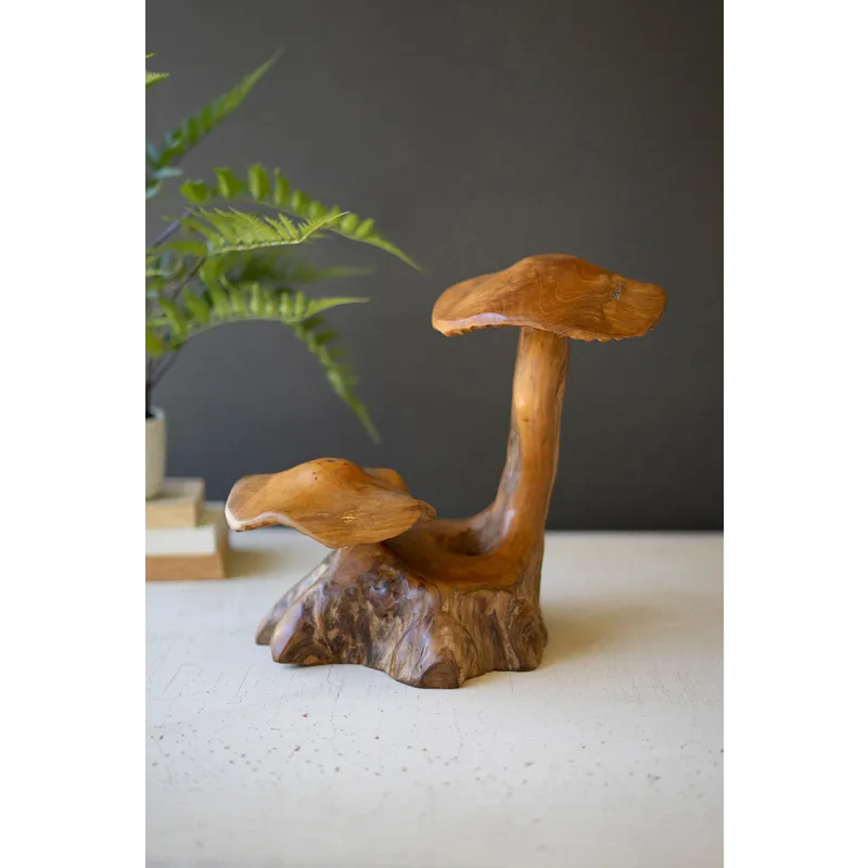 Add this mushroom sculpture to your planter area for a natural look. Shelf decor or a gift to your toadstool enthusiast, this one-of-a-kind sculpture is carved in Indonesia. What use can you find?