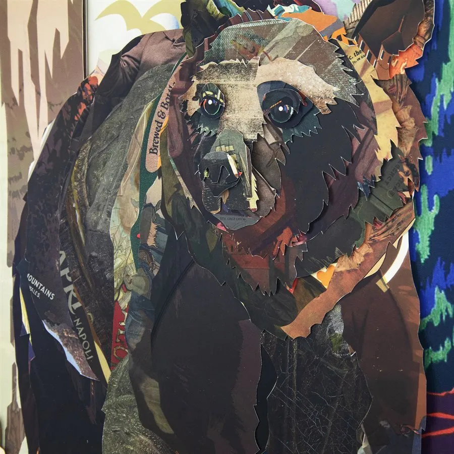 Designed by our very own Alex John. Yellowstone National Park established by President Ulysses S. Grant in 1872. Yellowstone was the first national park in the U.S. and spans parts of Idaho, Montana and Wyoming. it is also widely held to be the first national park in the world.The park is known for its wildlife such as bison, elk, pronghorn, deer, moose and its many hydrothermal and geologic wonders, especially Old Faithful geyser. While it represents many types of biomes, the subalpine forest is the most abundant. It is part of the South-Central Rockies forests ecoregion. Native Americans have lived in the Yellowstone region for at least 11,000 years ***Made of a minimum of 2-8 layers of hand laid paper images of 66 individual pieces  Under glass, this piece is set on a wildlife designed matte with Old Faithful in the background and a black frame, making it a stand-out piece for any room
