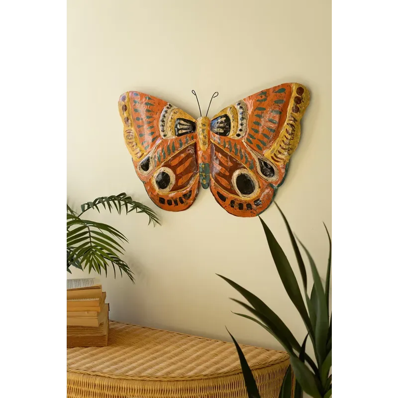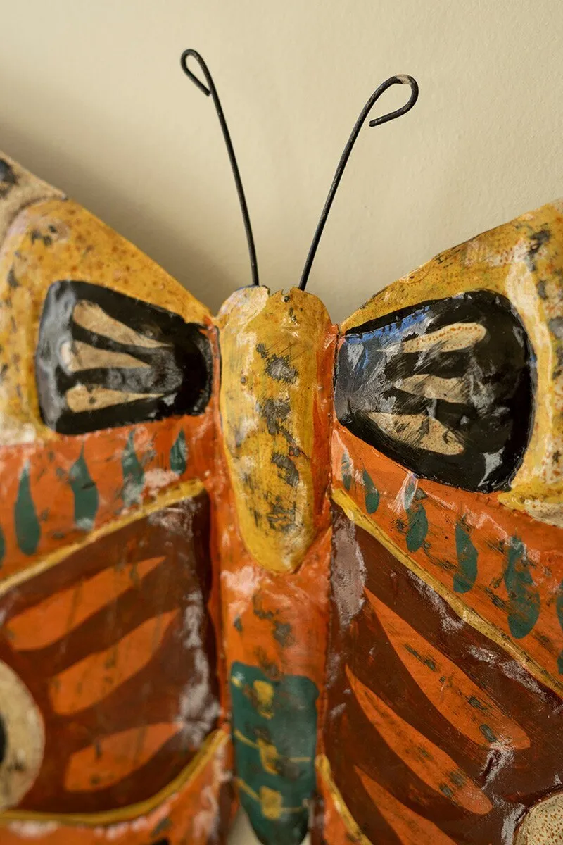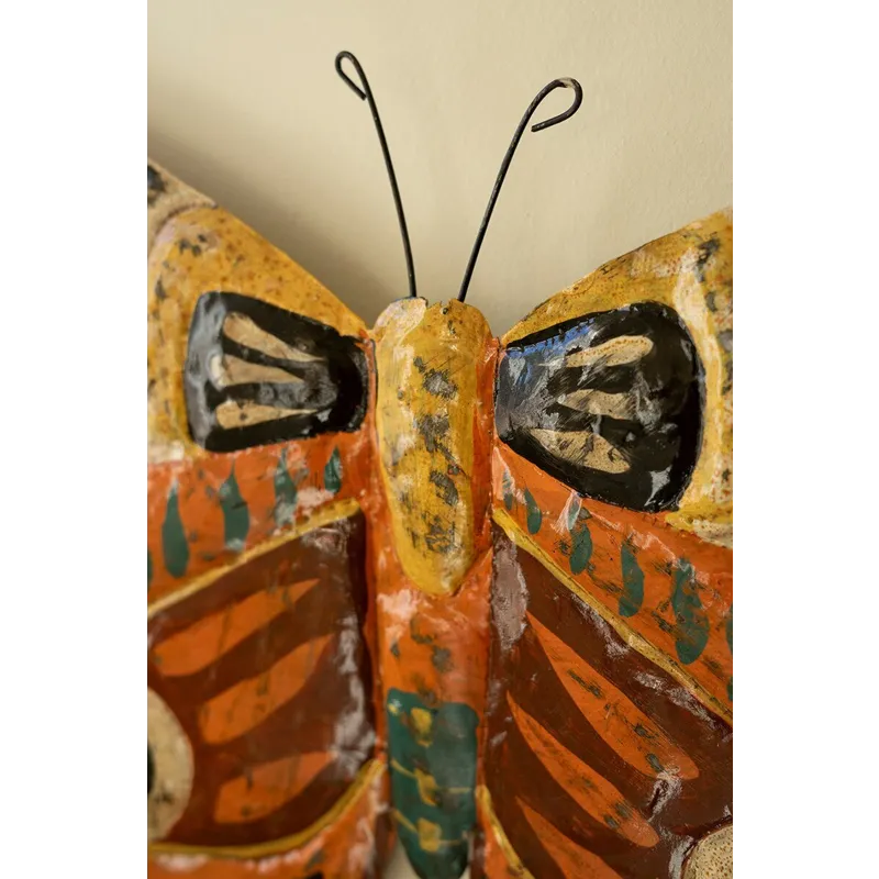 Spread your wings with this wall art. Handpainted in Haiti, this butterfly wall hanging is made of painted metal. It makes a great centerpiece on an accent wall or an addition to a butterfly collage.