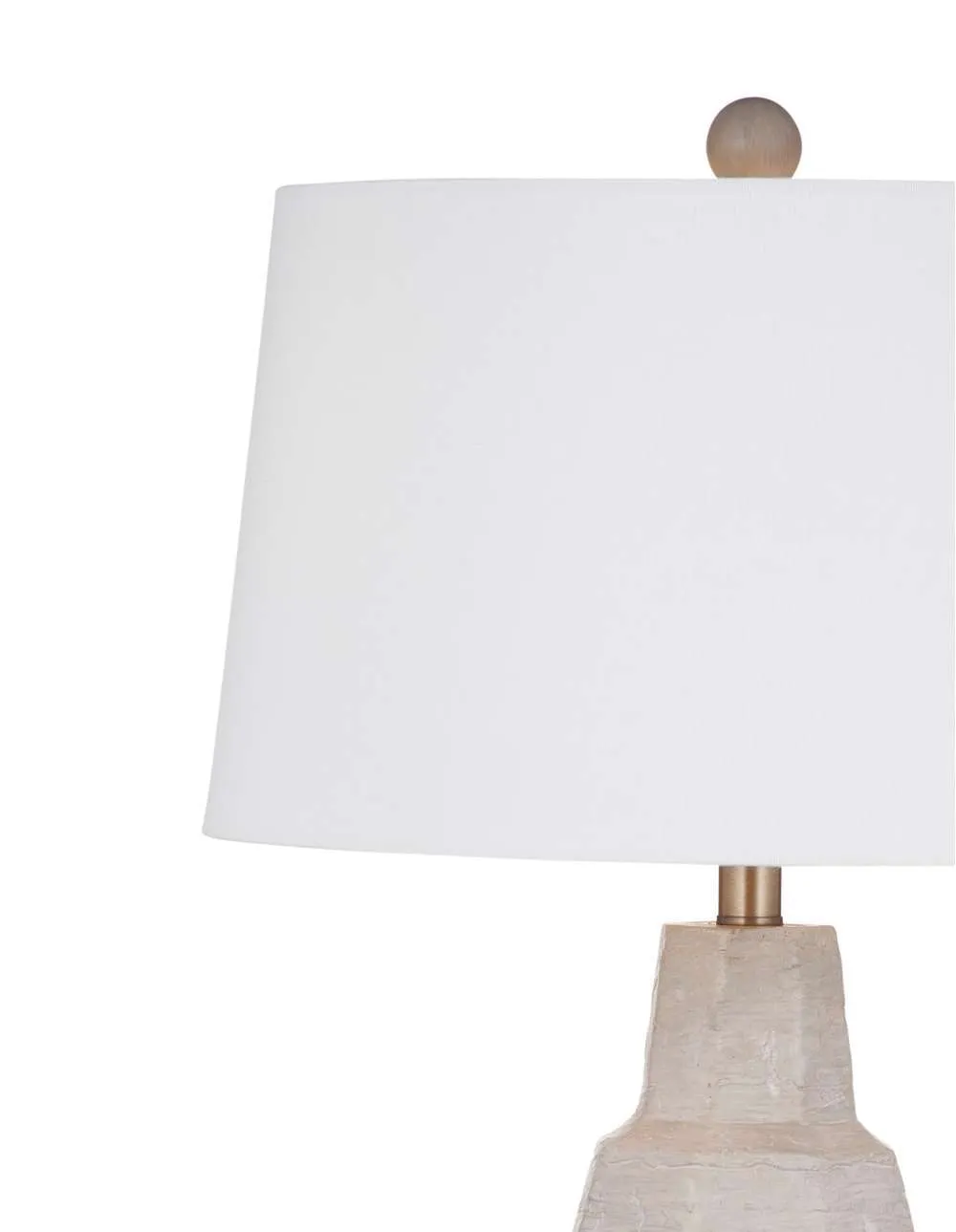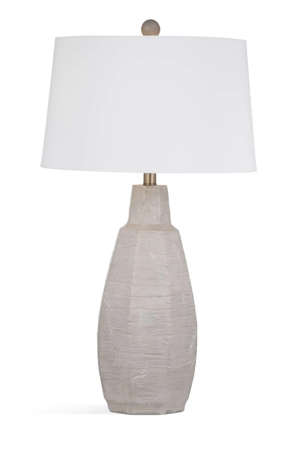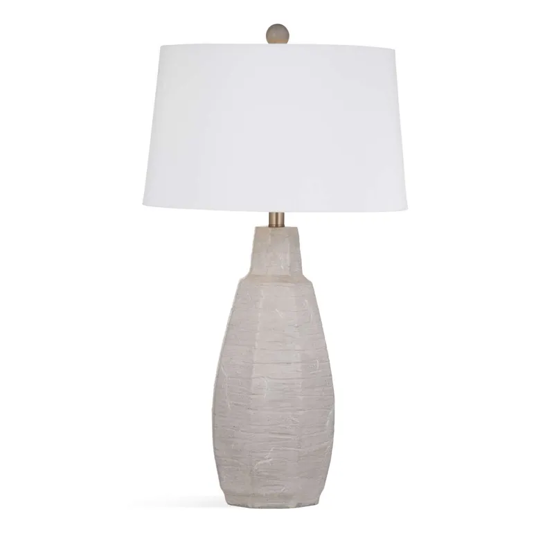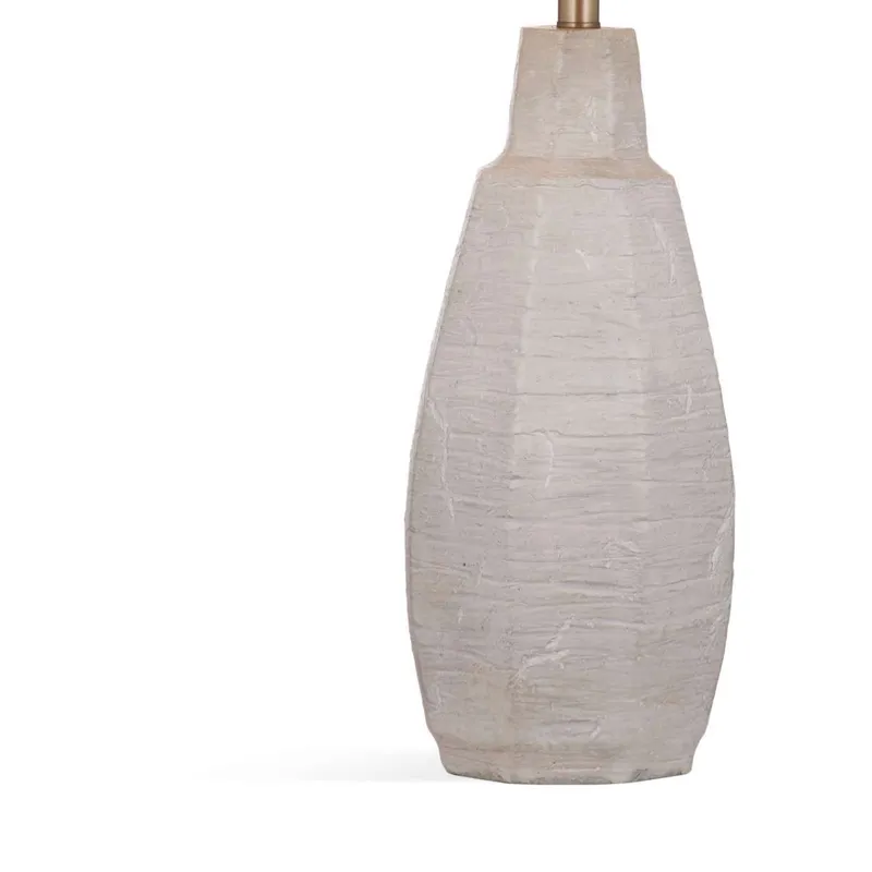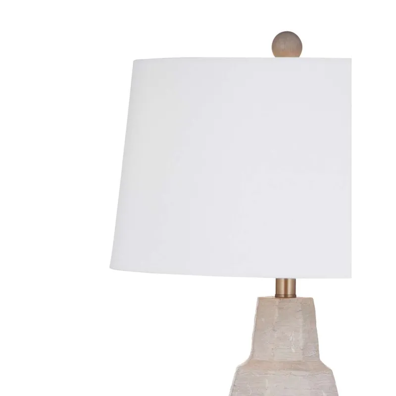 The Plata Table Lamp is crafted of cement in a cement and white washed finish with a white linen tapered shade.