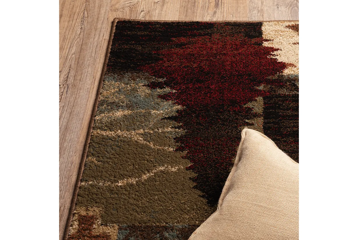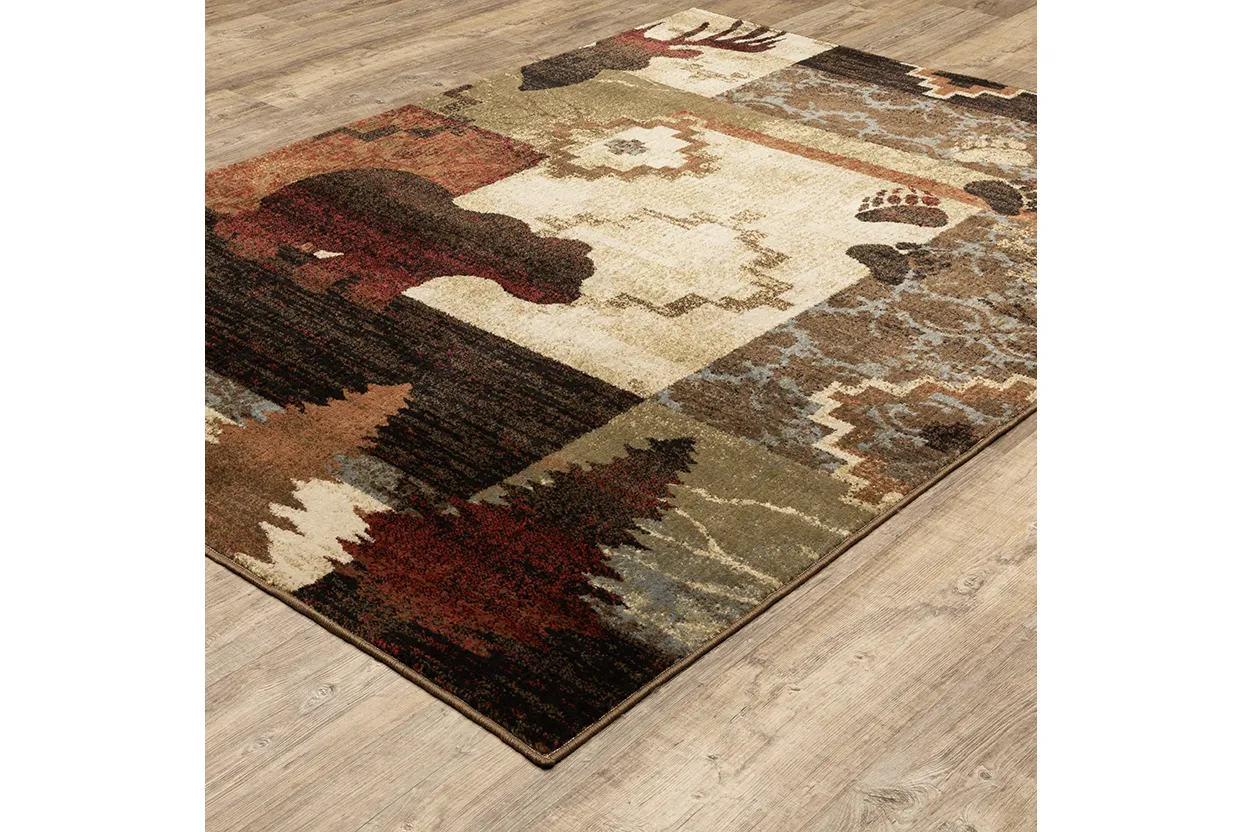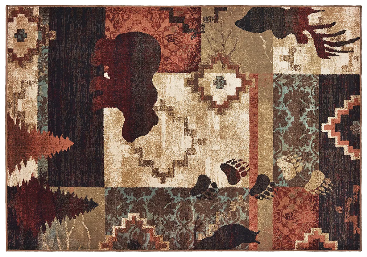 The Woodlands collection highlights traditional forest icons and charming lodge motifs. Rich shades of rust and berry, soft sky blue and sage green compliment neutral shades of soft black, deep brown, gold and ivory. Machine-woven in the USA of 100% polypropylene, Woodlands is sure to add a cozy warmth to any rustic setting.