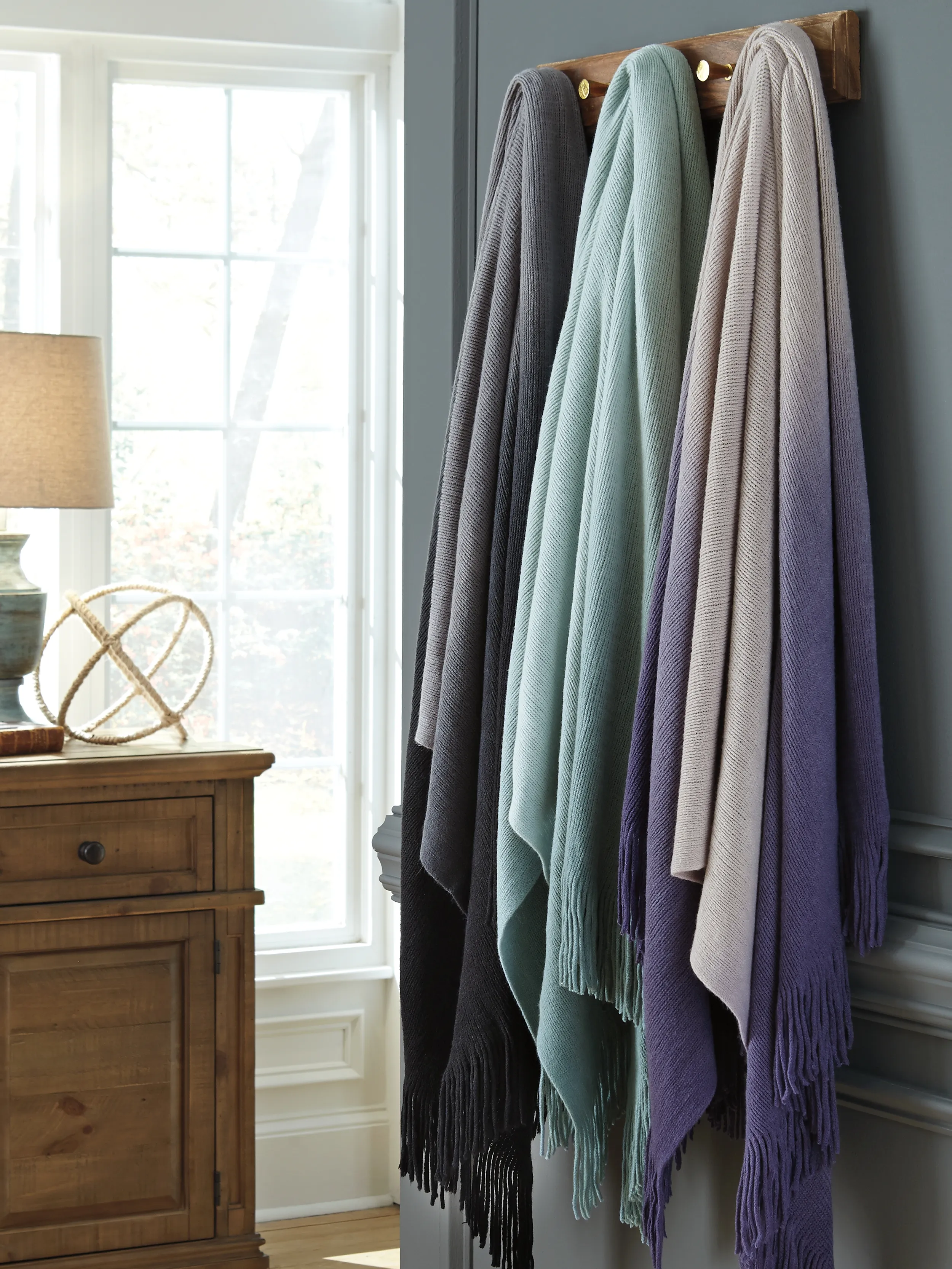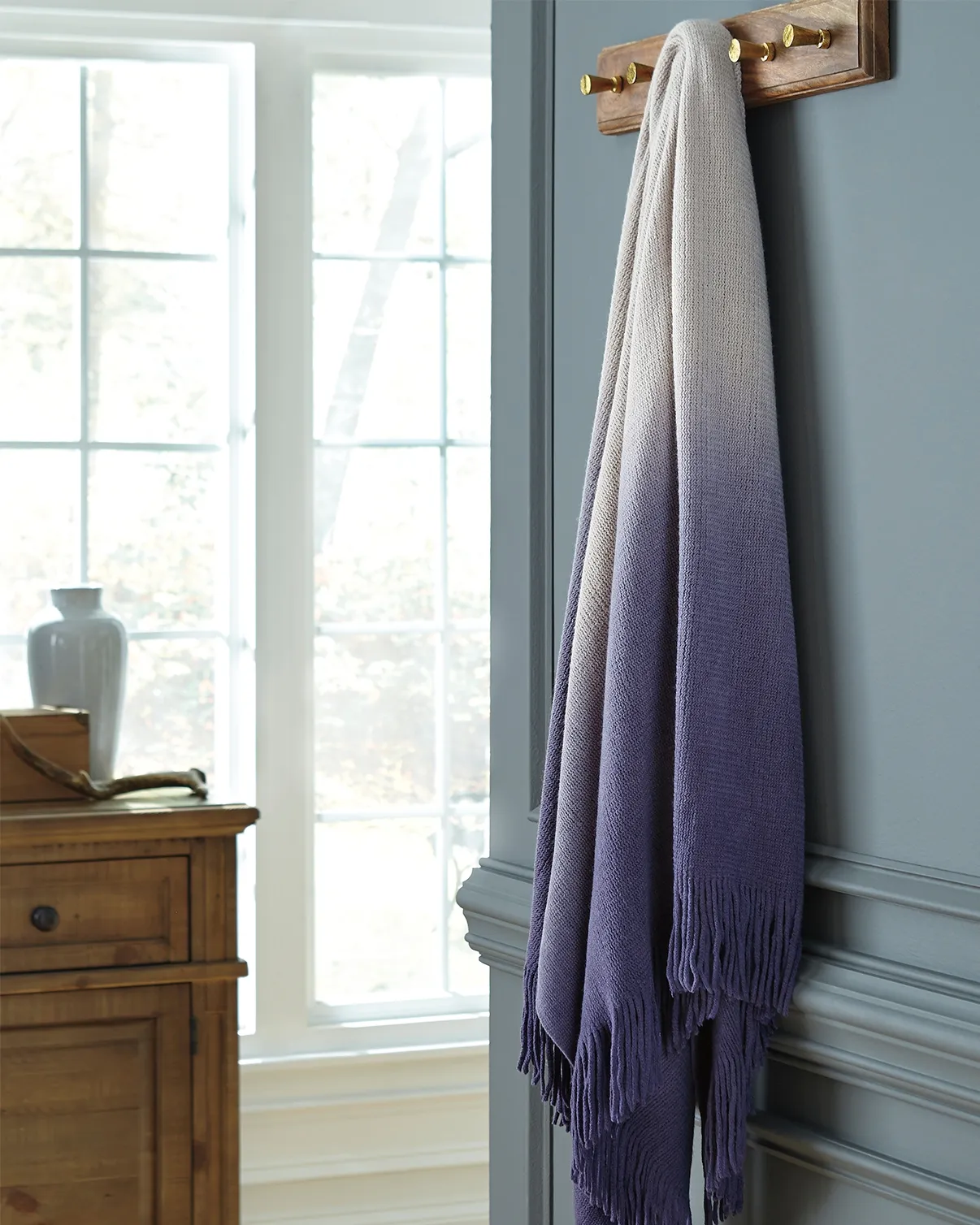 Fading into the palest shade of indigo, this ombre throw is as easy on the eyes as it is soft to the touch. Even more appealing? Easy-care material is machine washable.