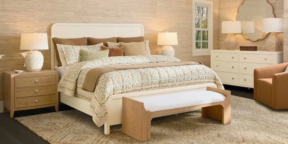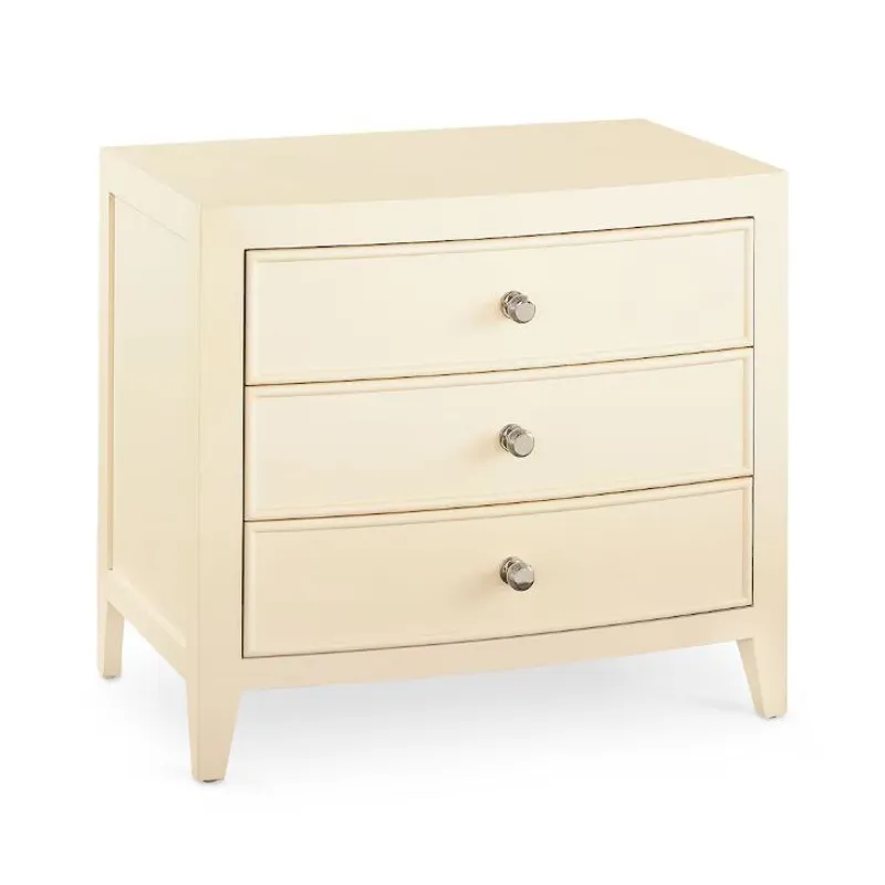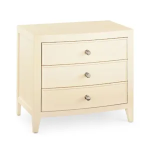 Newbury Nightstand (2944-0270): 30 x 20 x 26.8 - One of three night table options in the Newbury Collection, the Newbury Nightstand provides three drawers of closed storage for all your bedside essentials. With a top surface sized to allow for a lamp, books, eyeglasses, and more, we’ve designed this nightstand to play a strong supporting role in your most restful moments. It features the same framed side panels and polished nickel beehive knobs as the other pieces in the collection, allowing you to assemble a personally curated look for your bedroom. Offered in either textured White Oak or Parchment Gesso finishes.