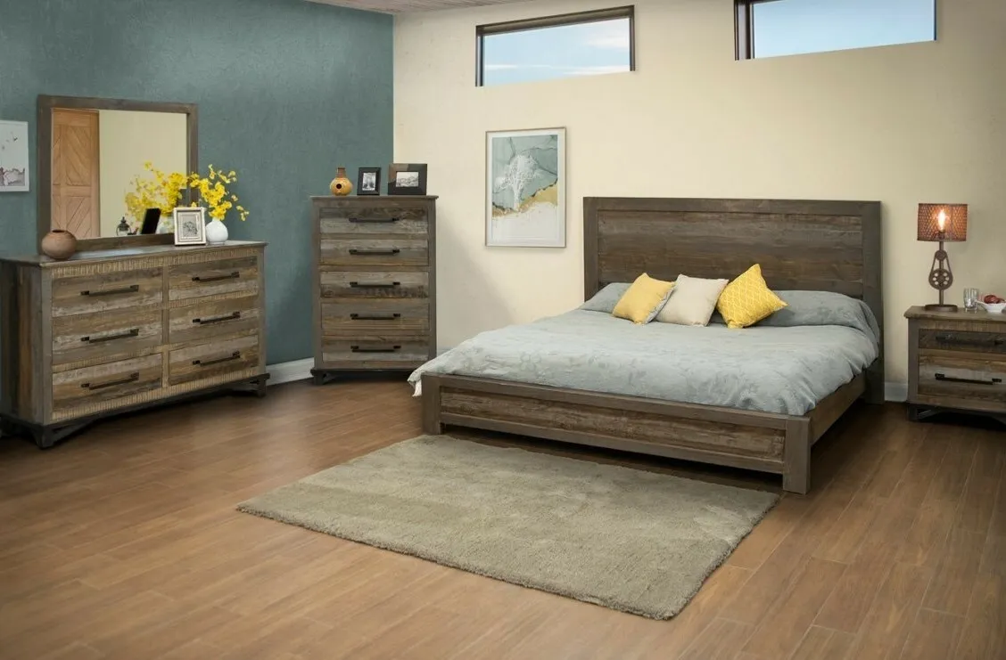 Loft Brown 4 PC Queen Bedroom Set includes bed, nightstand, dresser, & Mirror. *Chest not included