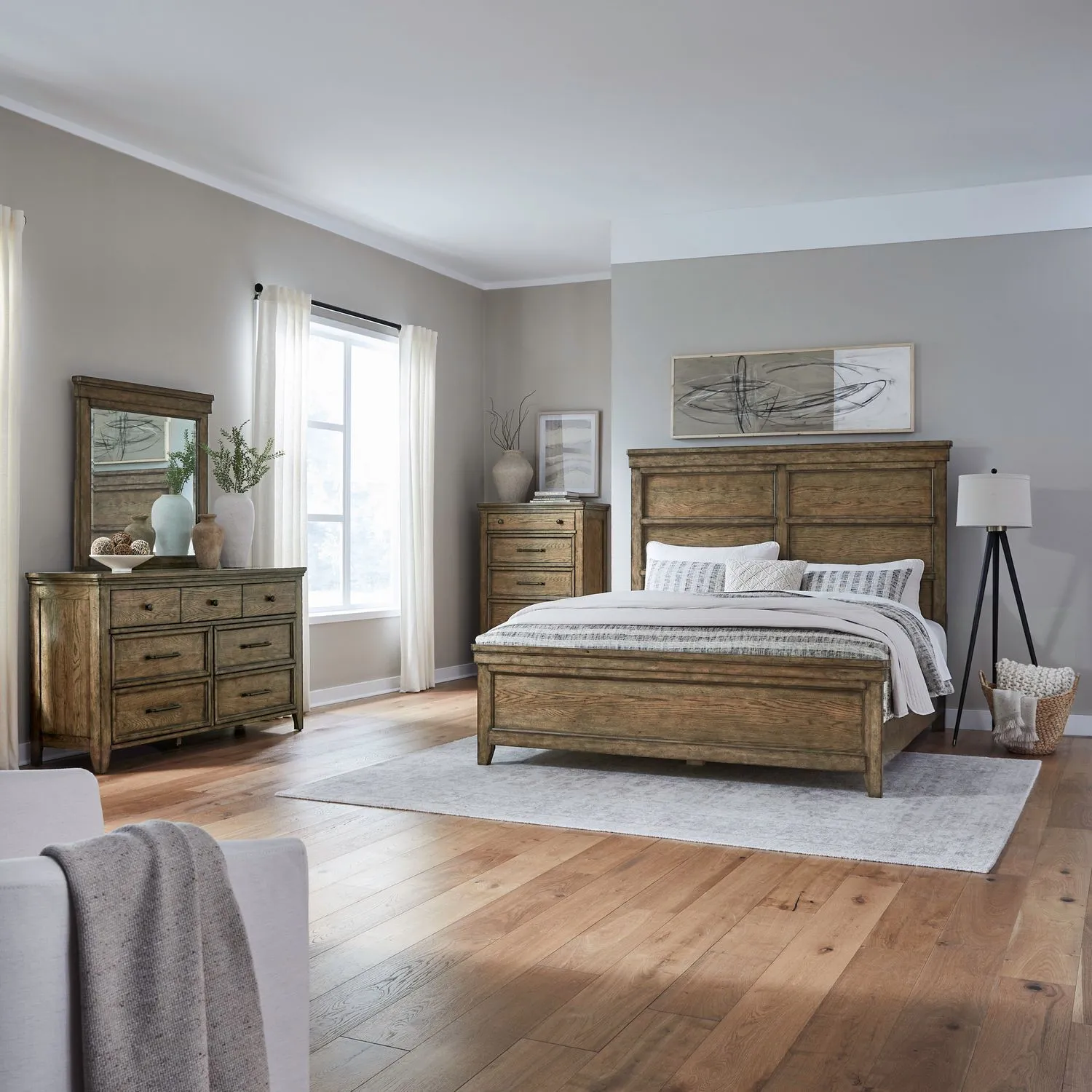 Carolina Park King Panel Bed, Dresser & Mirror, Chest by Liberty Furniture