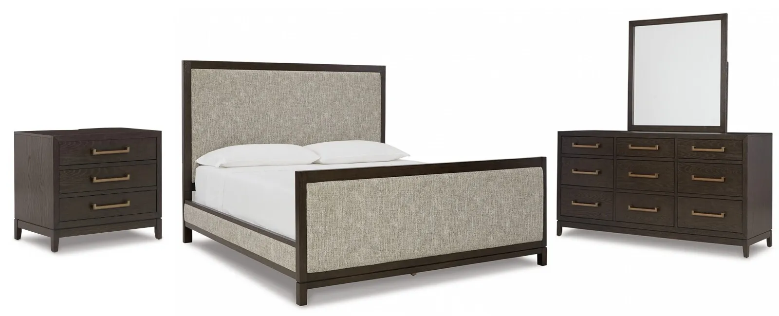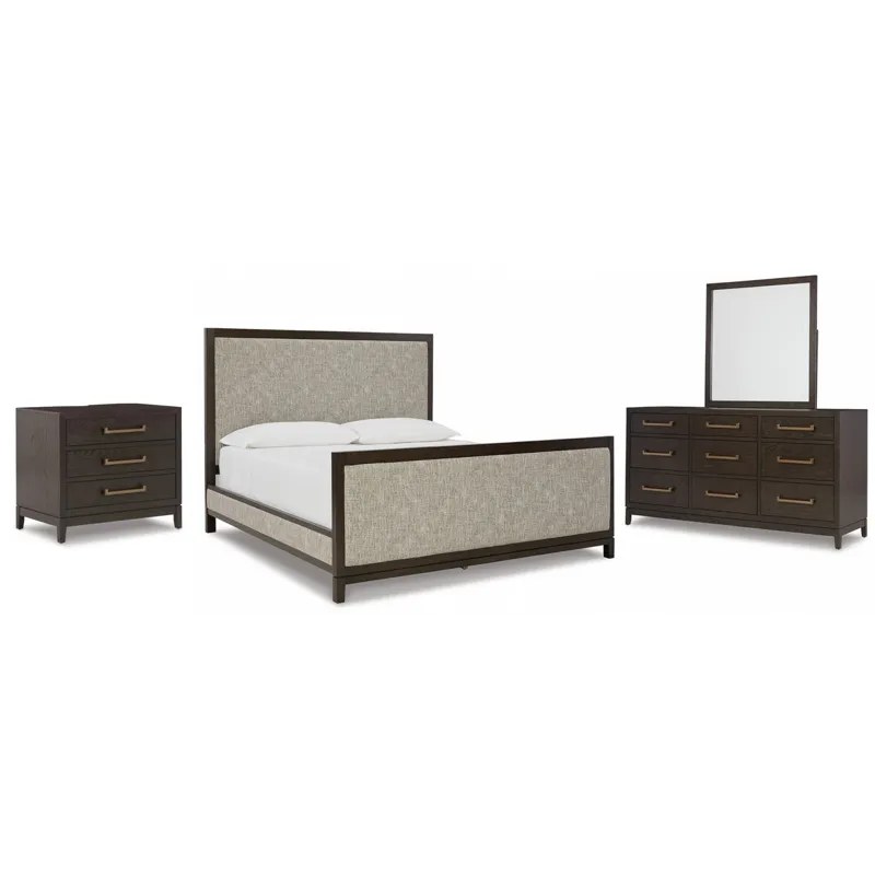 Burkhaus Queen Upholstered Bed, Dresser, Mirror and Nightstand
