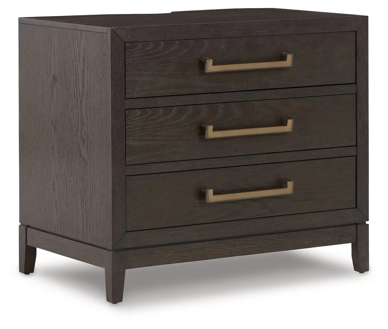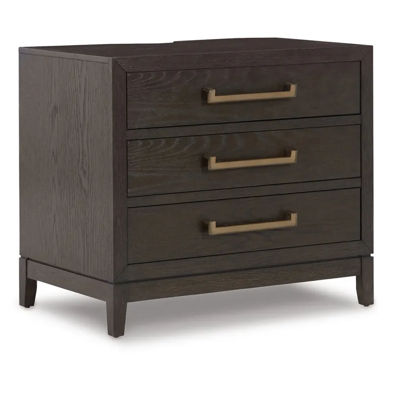 Dressed to thrill, this simply stunning bedroom package offers a high-design look at a down-to-earth price. Ultra-sleek lines are accentuated with a dark waxy brown oak-tone finish that’s so easy on the eyes. Beautiful from the inside out, for a timeless look that's made to last.