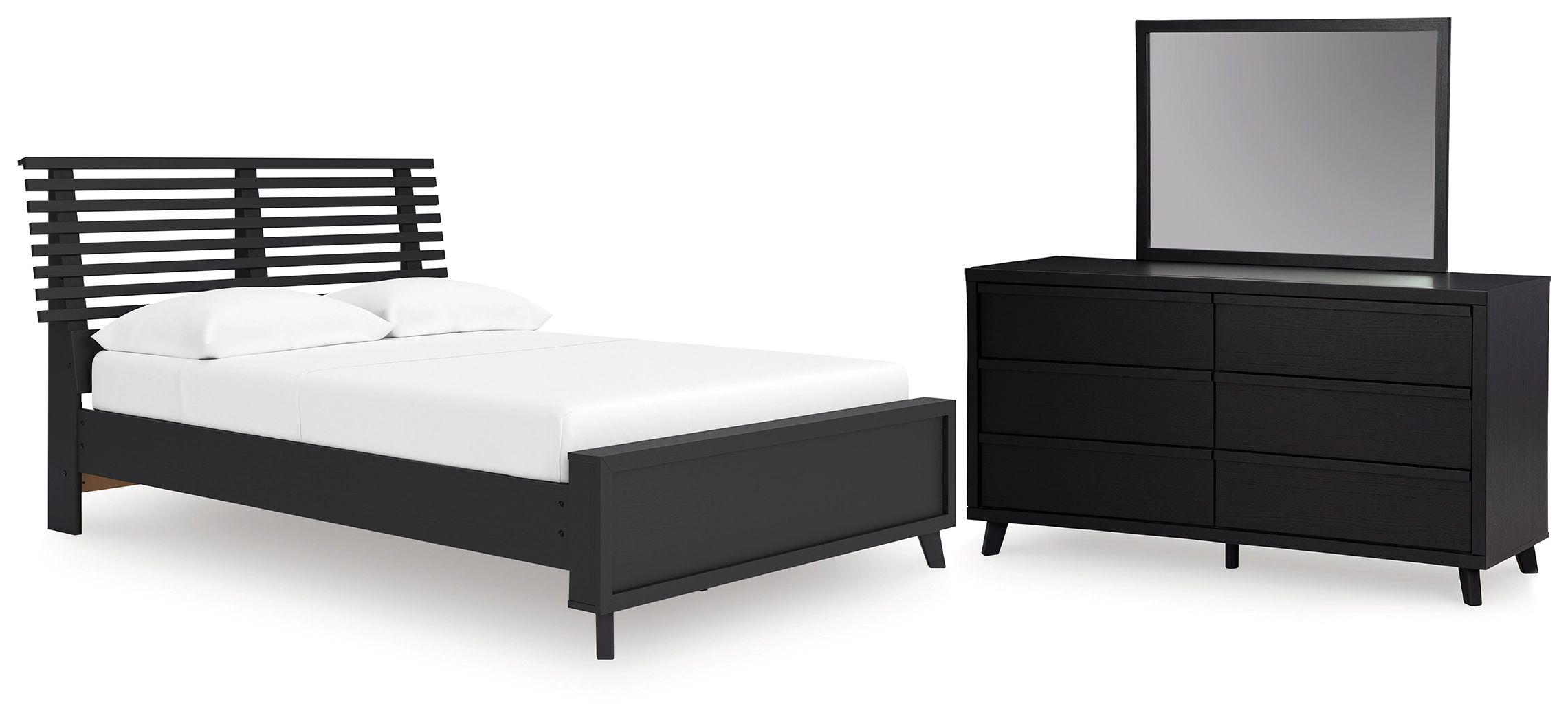 Danziar Full Slat Panel Platform Bed, Dresser and Mirror