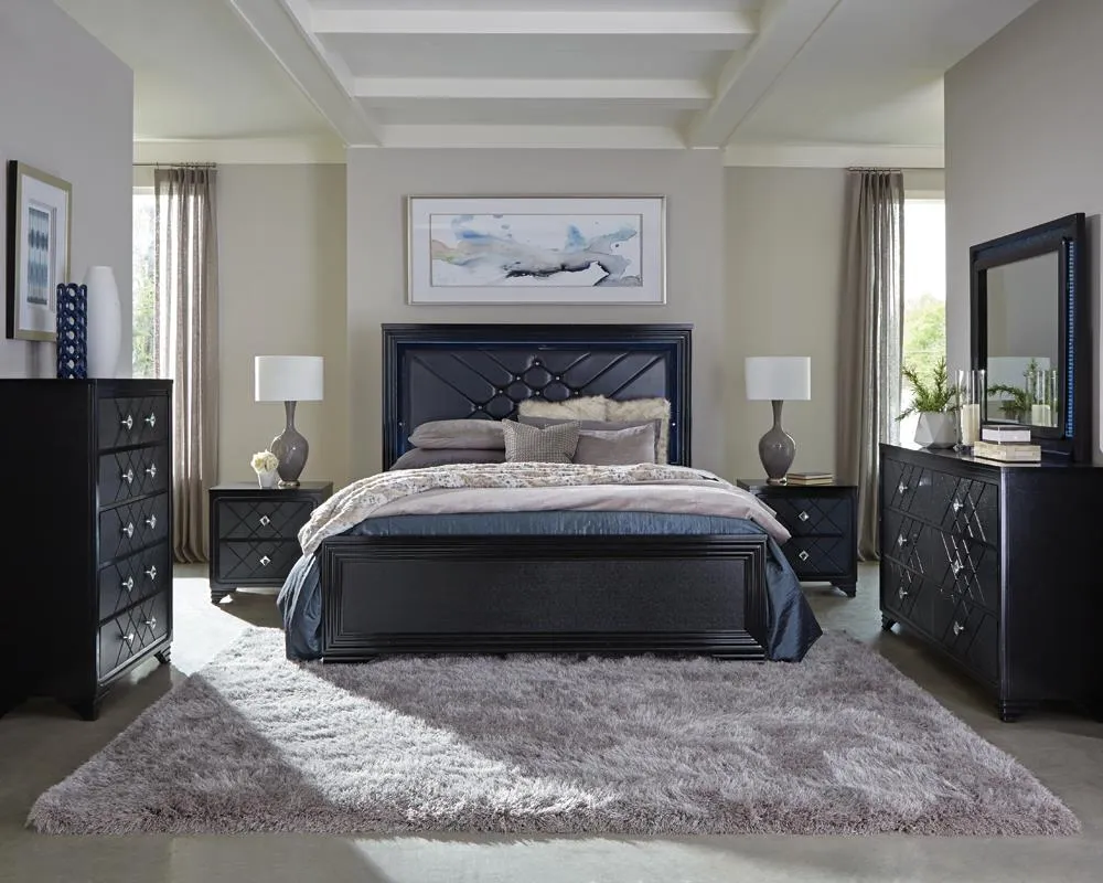 The Penelope Bed Led Lighting Black Midnight Star - Queen by Coaster Furniture may be available at MillerHome Furniture & Mattress in the Falls Creek, DuBois and DuBois areas. Please contact us to check availability.
