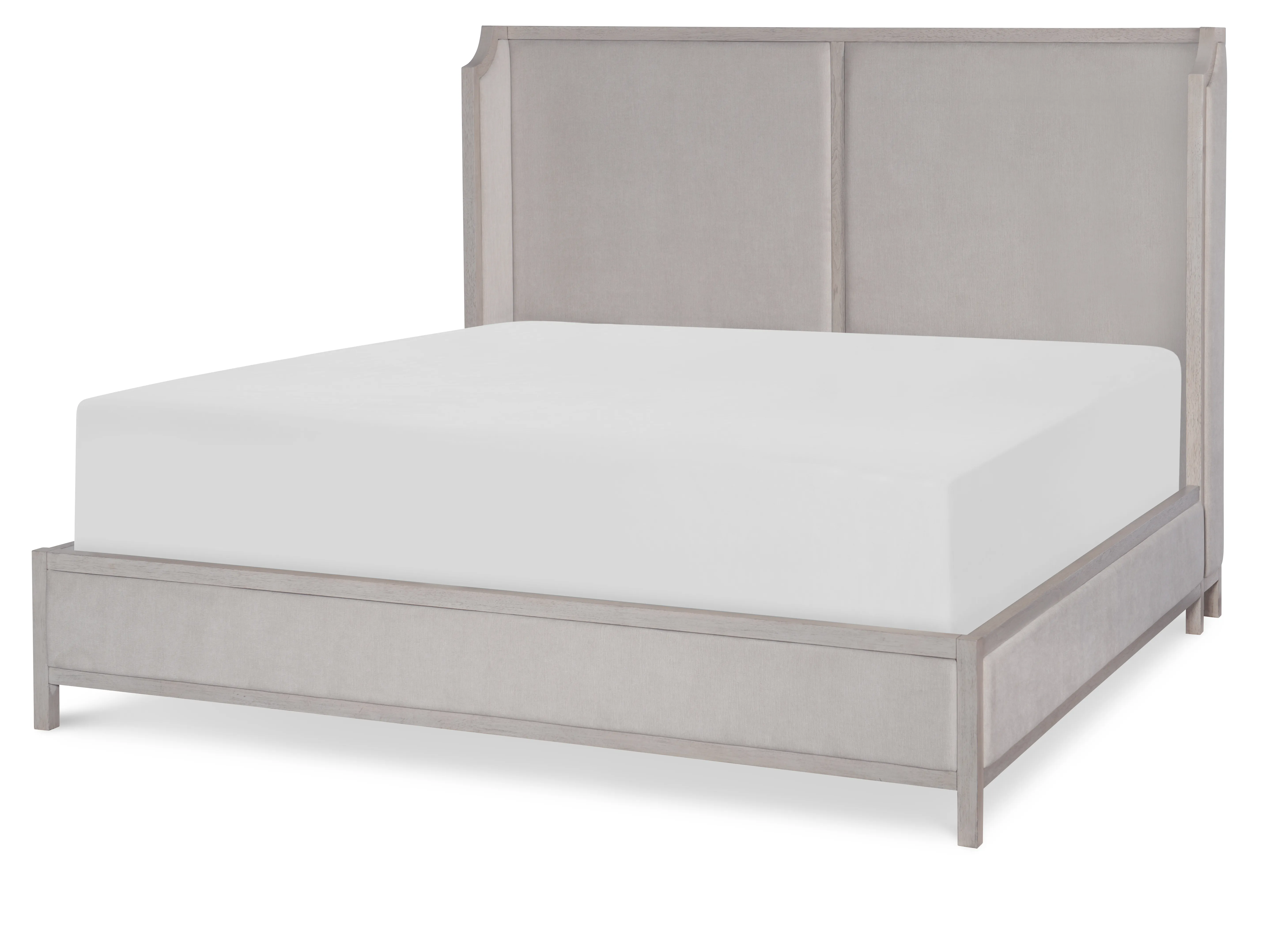 Add subtle glamour to your home with the complete King Upholstered Shelter Bed. Part of the Cinema collection by Rachael Ray, this unique bed features two panels that frame the headboard. The upholstery is 100% polyester in Graceland Sorrell. Pair with the N7200-2200 Chest and the N7200-3100 Night Stand for a stunning and timeless look that pops in any bedroom. Cinema is an elegant collection that reflects Rachael’s love of Old Hollywood style. Her designs are a perfect collaboration of classic elements with an updated aesthetic and modern function. Crafted from Hardwood Solids with Walnut Veneers and accompanied by custom-designed metallic Silver Screen-finished hardware and accents. Interior is 77" x 81" CA CARB P2 Compliant. Color: Shadow Grey. Material: Select Hardwoods with Walnut Veneers .