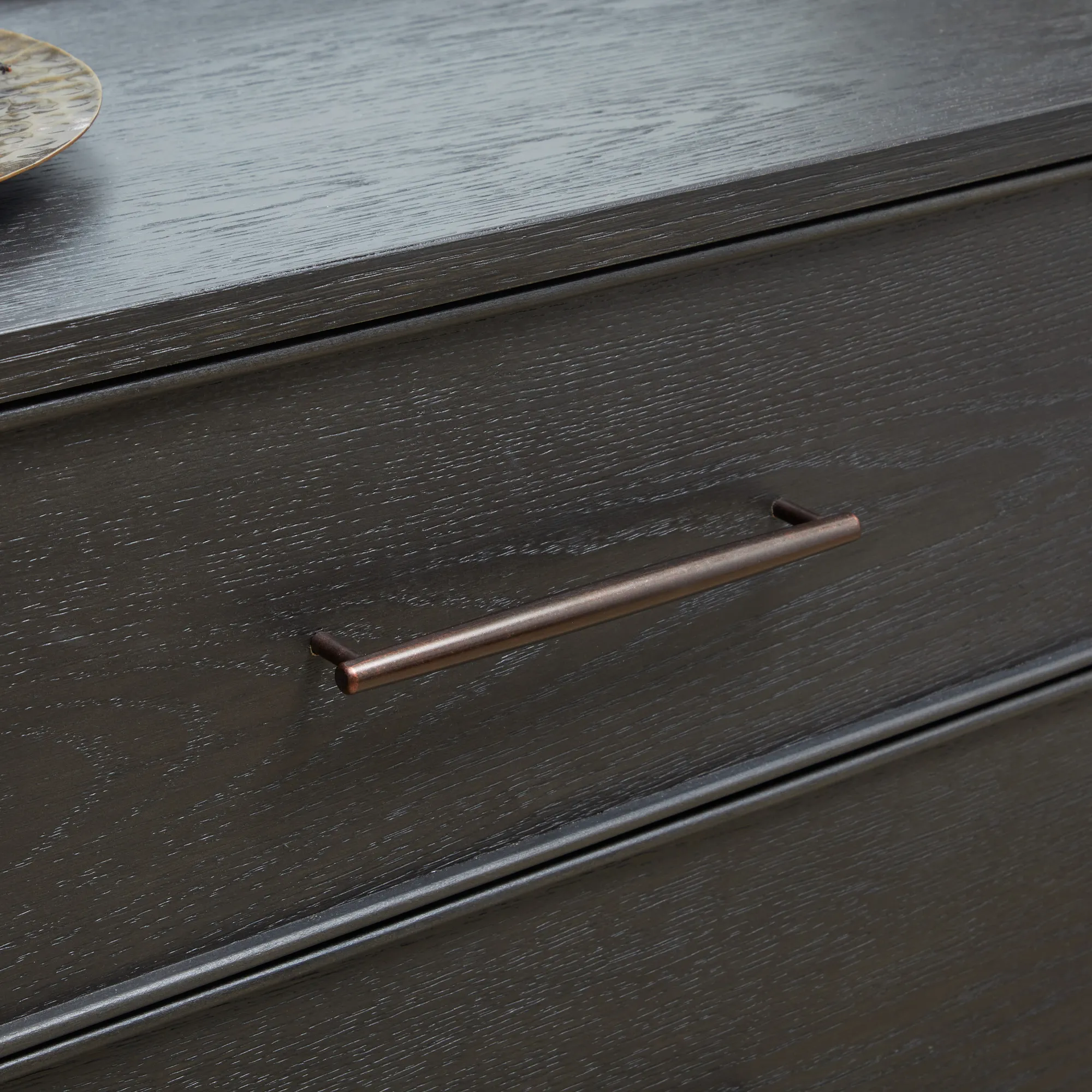 Add effortless style and architectural appeal to your living room with the Waterfall round end table. This striking table features a timeless silhouette defined by clean lines and simple geometric shapes, including a substantial sculptural crisscross base that supports the top. Group and nest this table with the coordinating Waterfall round coffee table for added visual interest and function. The Waterfall round end table is well-crafted from solid rubberwood with oak veneers and features a deep ebony finish for lasting beauty.