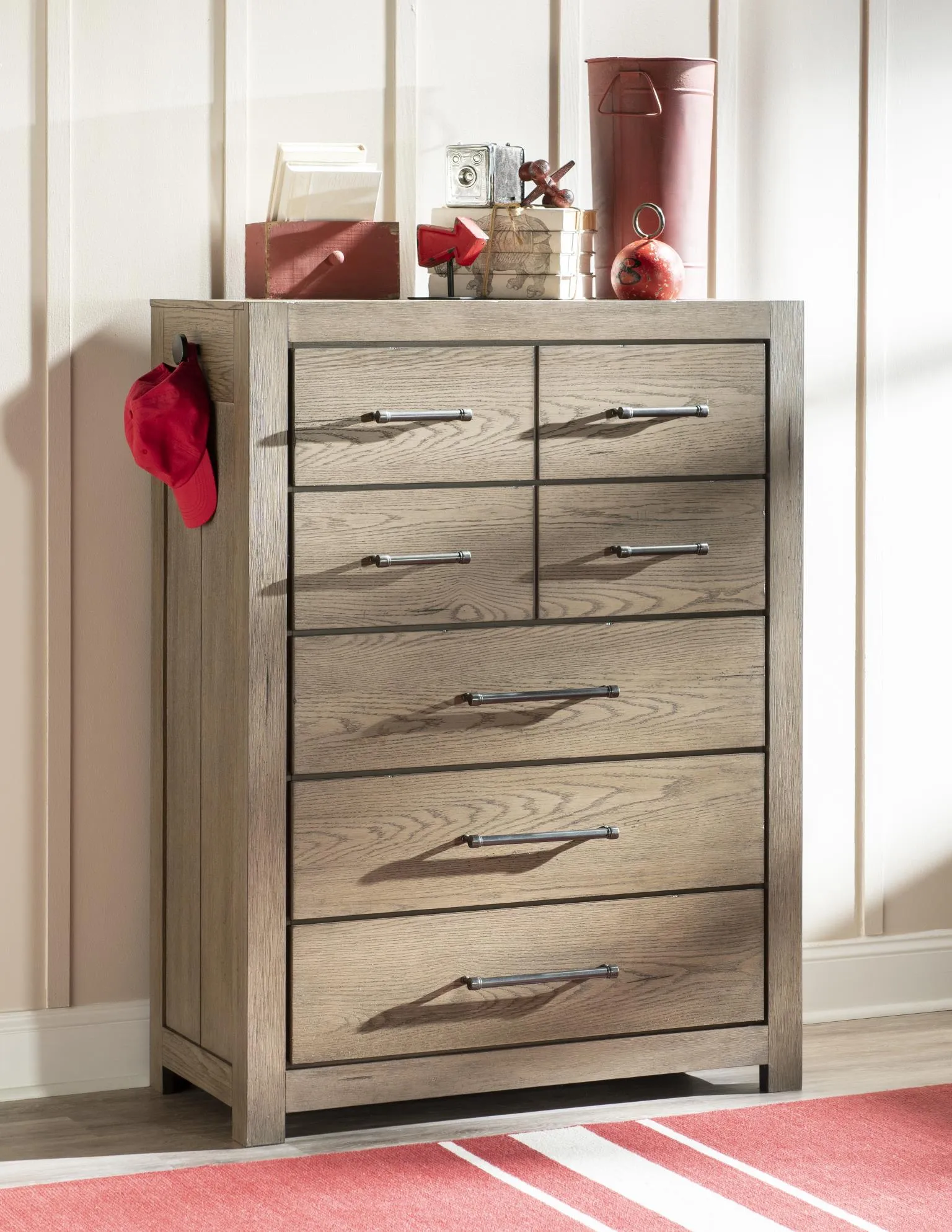 The Wyatt collection combines rustic charm with modern functionality. The weathered stone finish exudes warmth and character. Rustic Pewter bar pulls complete the look. Choose between the slat panel bed or captain's bed, complete with spacious drawers and slide-out workspaces for homework or creative projects. The convenient trundle option is perfect for sleepovers or additional underbed storage. The elevated desk features ample drawer and door storage, plus a light to brighten any task. Power outlets and USB charging ports on select pieces allow you to easily plug in lamps and charge electronics.