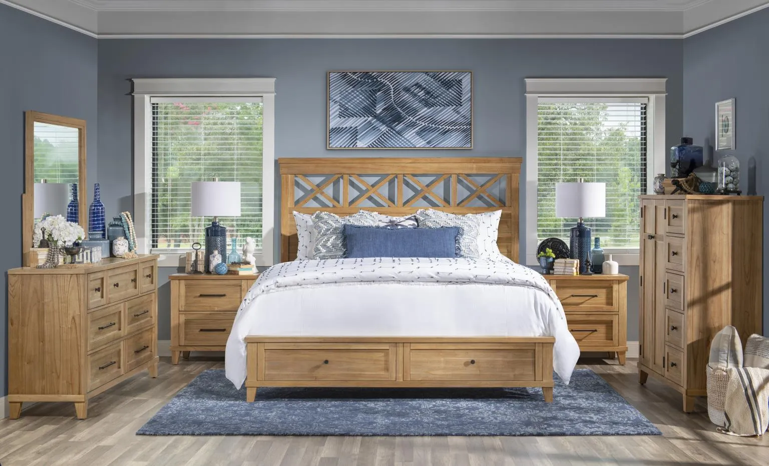 Trisha Yearwood's new modern farmhouse whole-home furniture collection, XXX's and OOO's, is her 10th collection in home furnishing. Named after one of her biggest country music hits of the same title, three different wood species and four finishes are used on the bedroom, dining, living room and office collection, making it a tapestry of colors, textures and woods. Classic architectural forms and X and O motifs are used on select pieces and some hardware.A‚