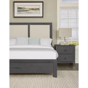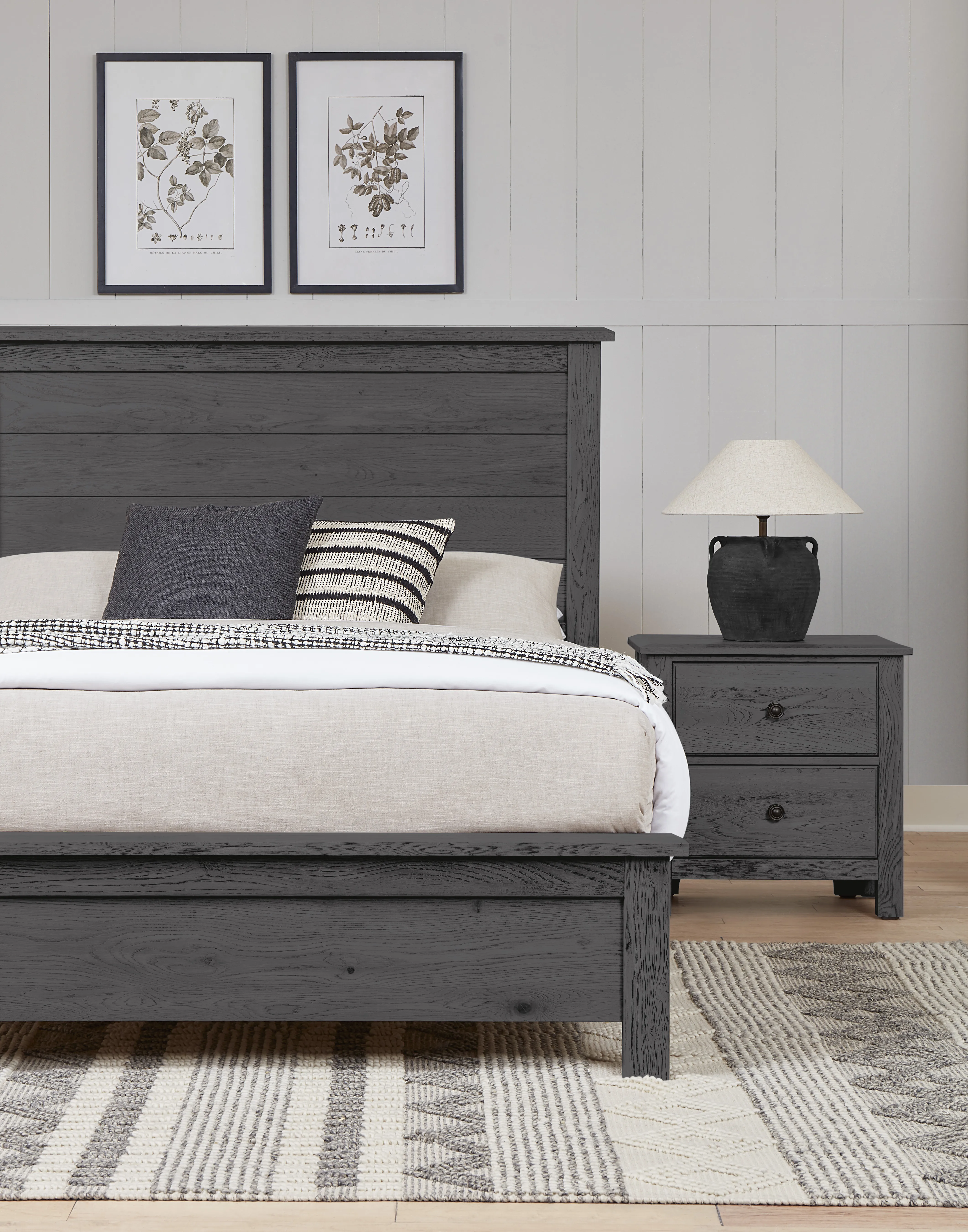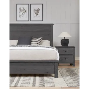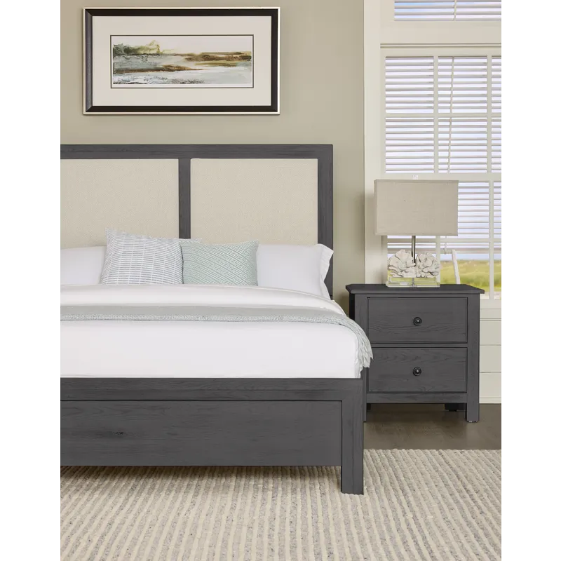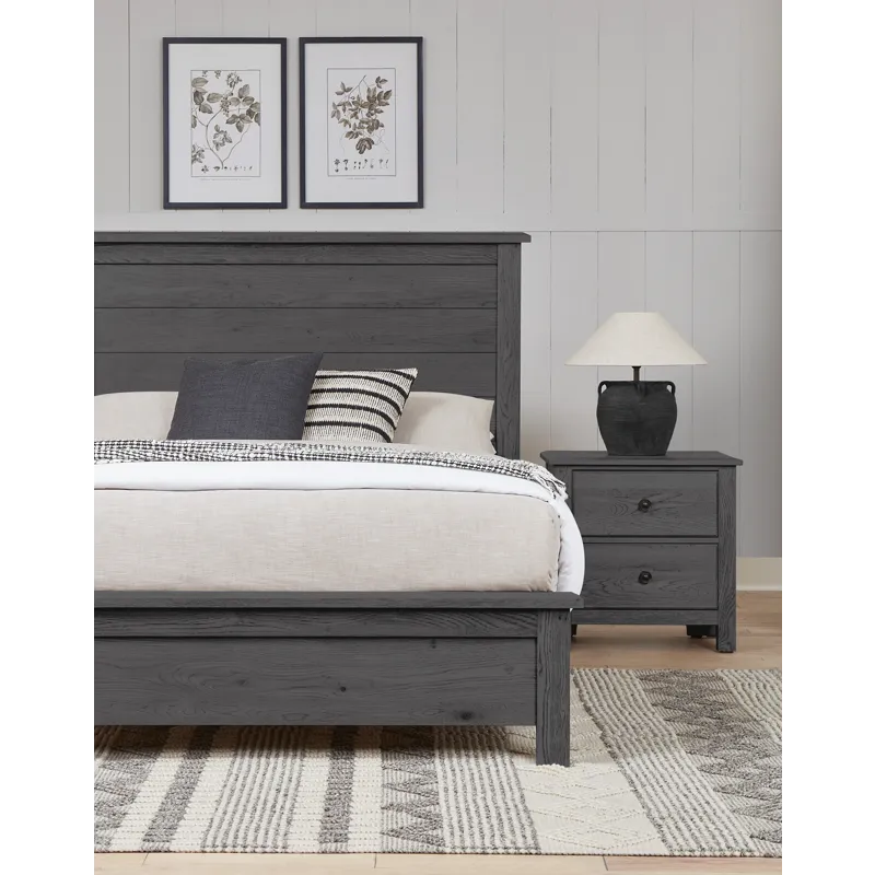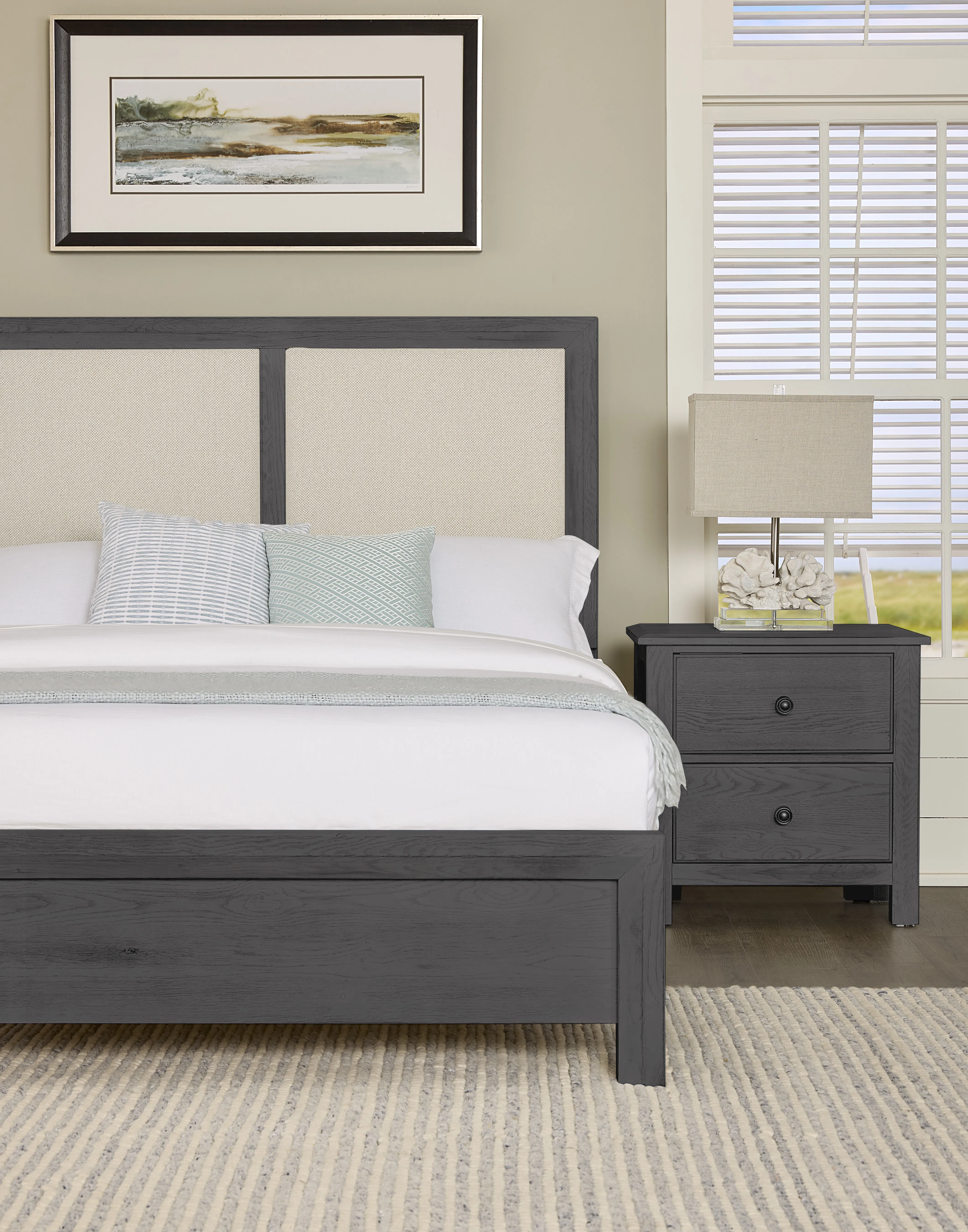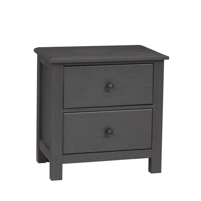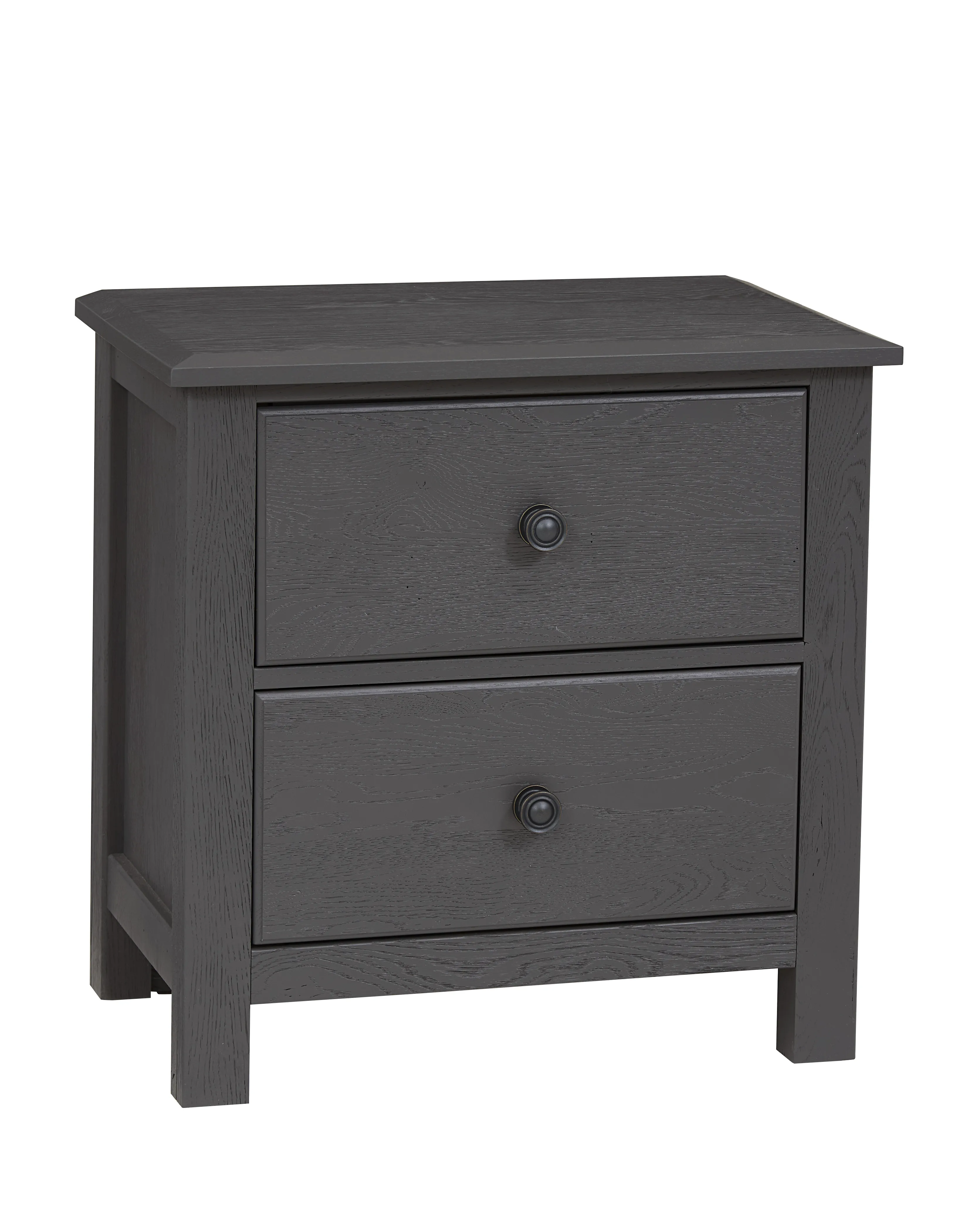 Made in the USA; this night stand has two drawers shown in a graphite finish offers casual style to any bedroom in your home. Made from solid American White Oak. Available in 5 quick ship finishes.