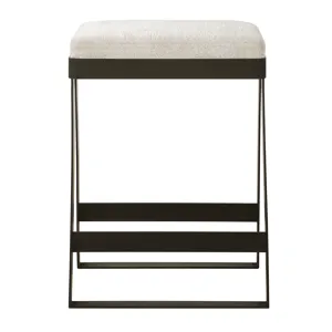Simplistic But Sturdy, This Statement Counter Stool Features A Thick Hand Forged Iron Base Finished In Matte Black. Plush Seat Is Tailored In An Off-white Linen Blend Fabric With Added Performance Treatment To Resist Soiling And Stains. Seat Height Is 26".