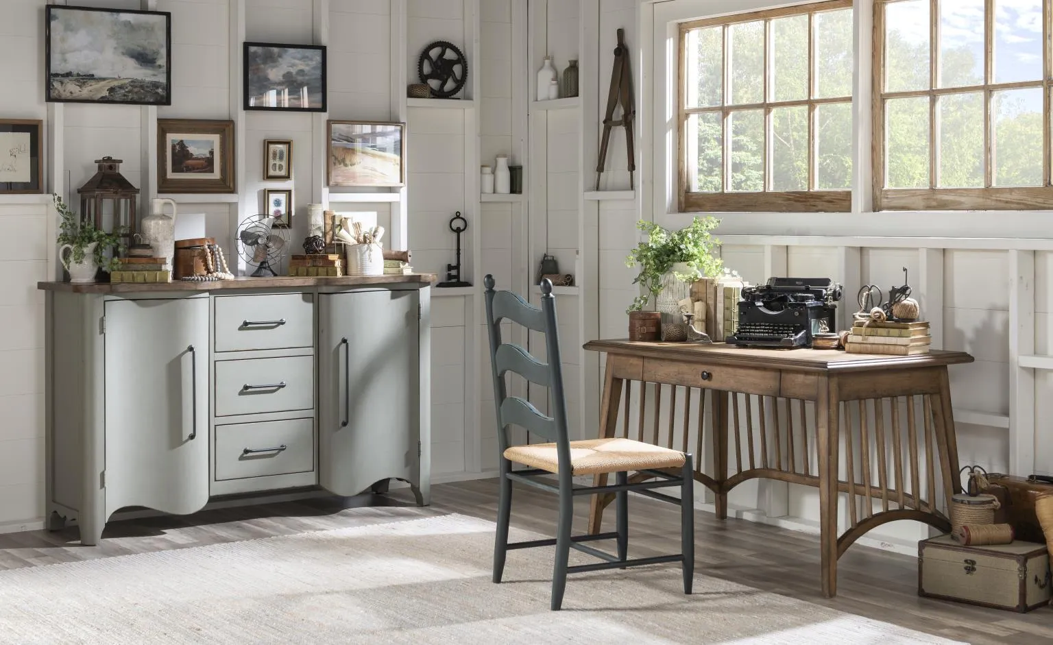 Country Living's Vintage Market collection is a unique blend of classic styles and aged finishes, creating a timeless and elegant look for your home. The collection's beauty goes beyond the look of antique, hand crafted furniture; it also has versatility. Vintage Market can appeal to those wanting to surround themselves with an eclectic mix of furniture pieces and, simultaneously, those looking to take a more matched approach. The magic of the Vintage Market collection is that it will appeal to almost everyone who wants to embrace the Country Living lifestyle. The Country Living aesthetic is Warm+Cozy+Family, and that feeling is woven into every piece of the Vintage Market collection.