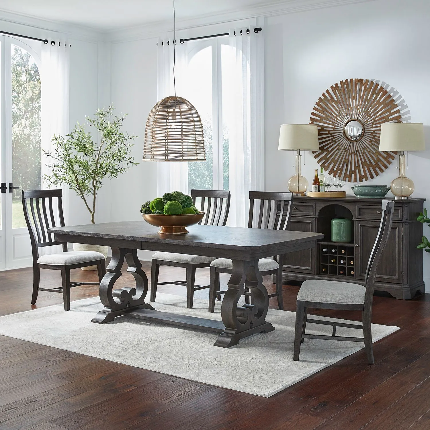 Transitional style is a marriage of traditional and contemporary furniture, finishes, materials and fabrics equating to a classic, timeless design. Furniture lines are simple yet sophisticated, featuring either straight lines or rounded profiles. The transitional style is one of the most popular styles used to decorate homes. It incorporates design elements from a variety of centuries, which allows homeowners to feel comfortable and elegant at the same time. The transitional style features warm, rich colors that are very inviting.