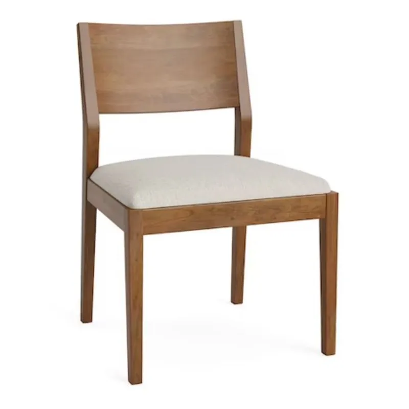 Myers Upholstered Dining Side Chair x6 (4226-2655): 20.8 x 22 x 33 - Simplicity is the style secret to the scene-stealing Myers upholstered dining chair. The sleek, modern lines of its contoured wooden back and tapered legs showcase the solid wood craftsmanship that is a Bassett hallmark. Surround your table with a grouping of Myers chairs or pair them with some of our fully upholstered dining chairs. Handcrafted in sustainable, solid Appalachian hardwood, you can choose from a range of lightly distressed finishes.