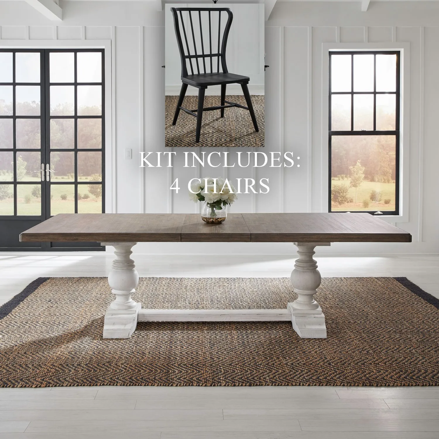 - Includes the Trestle Table & 4 Black Windsor Side Chairs
