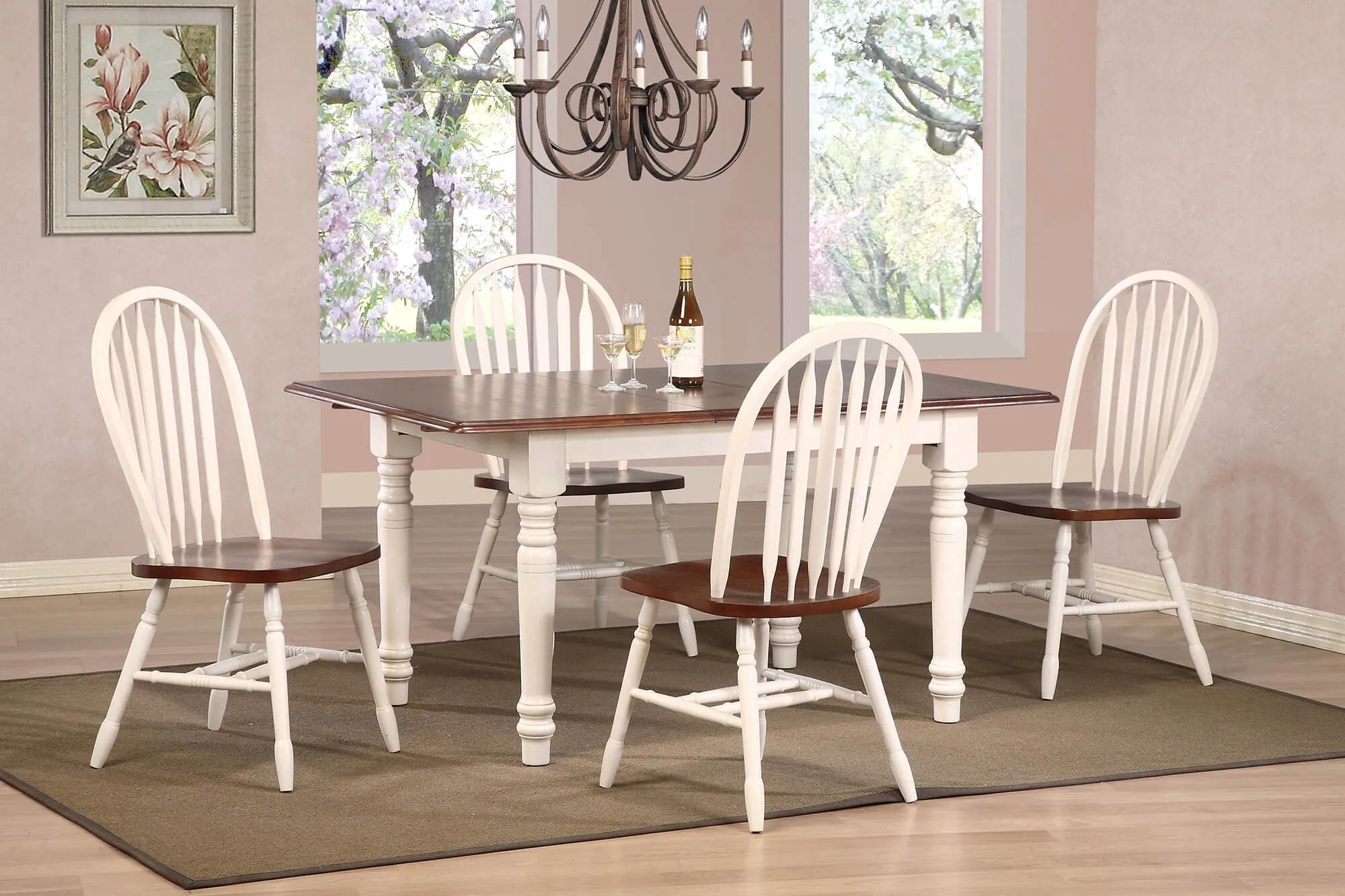 Andrews Arrowback Dining Chairs – Antique White & Chestnut (38″)  20" W x 19.5" D x 38" H