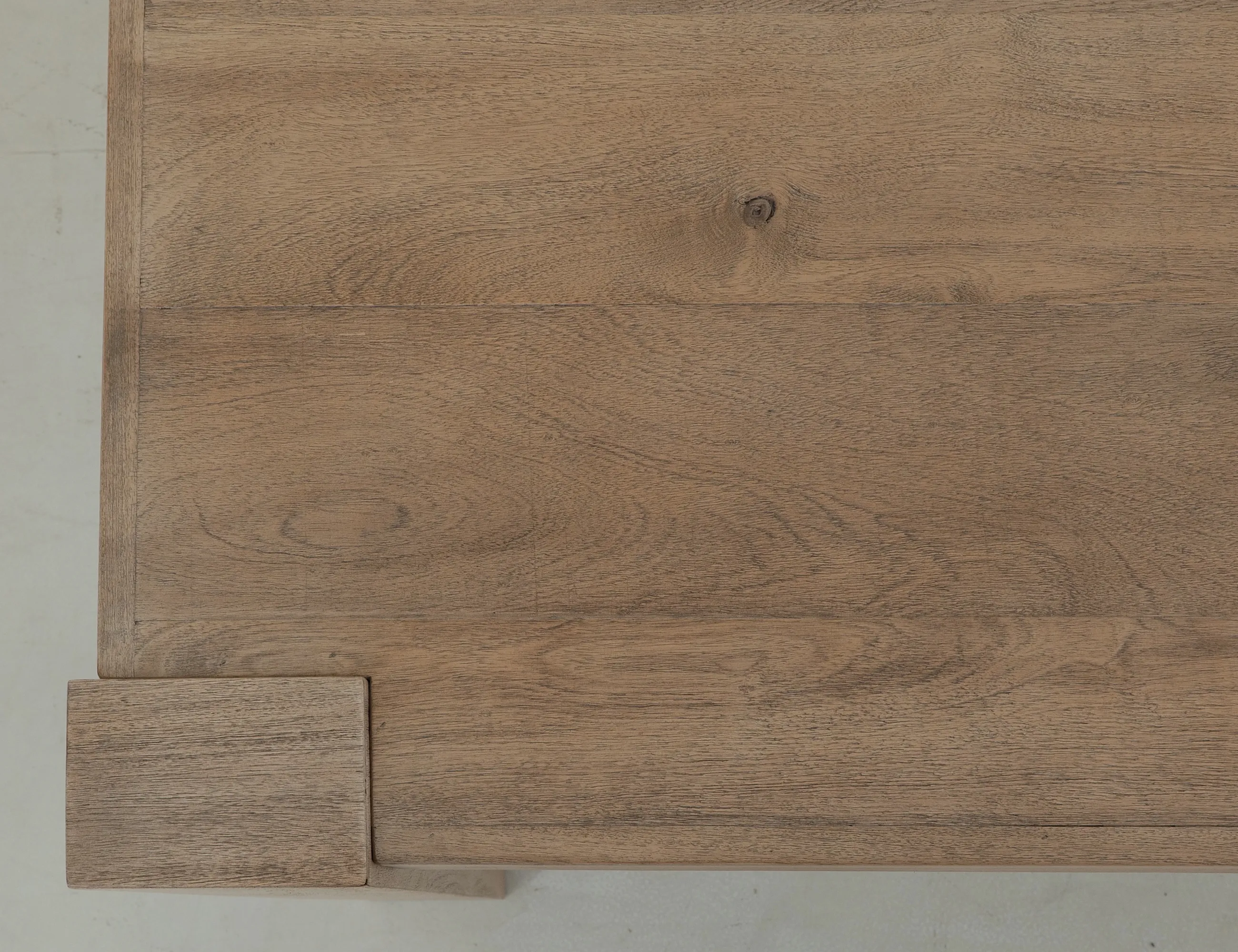 - Multi-step lacquer finish in a sand brown showcases a seamless wood texture.