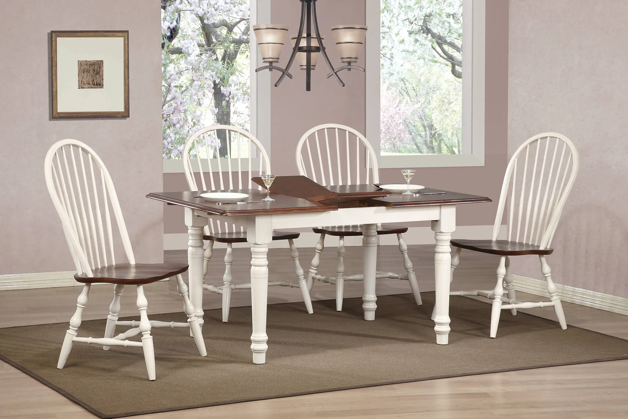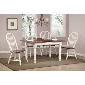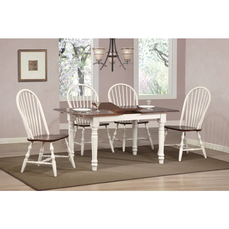 Add traditional country cottage charm to your home without compromising space or style. Two colors are better than one, off-white and chestnut brown wood is a clean and refreshing combo that modernizes the classic farmhouse style of this dining table. Perfect for small dining area, condo, apartment or downsized senior home living, this double drop leaf table serves your day-to-day needs yet transforms into extra dining space when guests drop by. Mix and match with your choice of Sunset Trading Andrews Collection arm and side chairs, buffets, kitchen islands, carts, and home bar furniture (sold separately) to complete your perfect dining retreat. The superior solid wood craftsmanship is designed to last for generations!