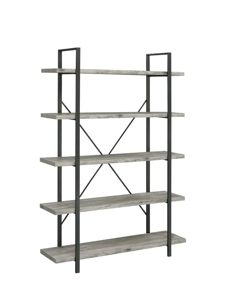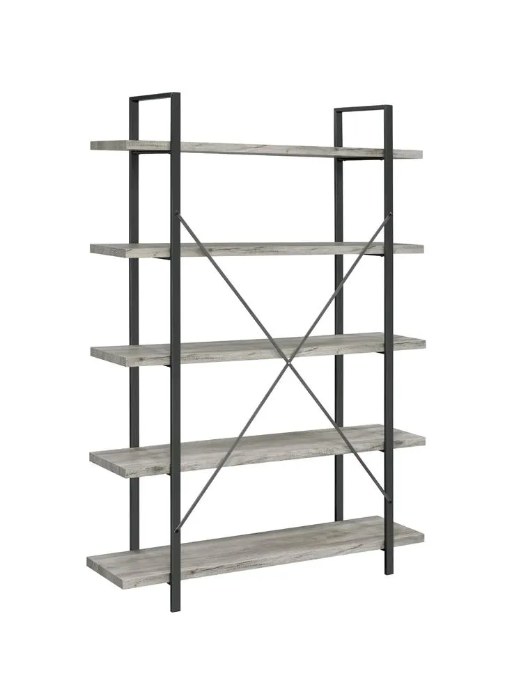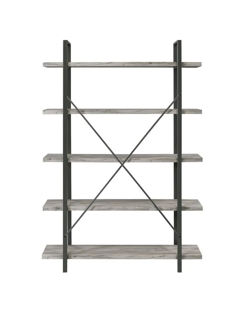 The Cole 5 Shelf Bookcase Grey Driftwood Gunmetal by Coaster Furniture may be available at MillerHome Furniture & Mattress in the Falls Creek, DuBois and DuBois areas. Please contact us to check availability.