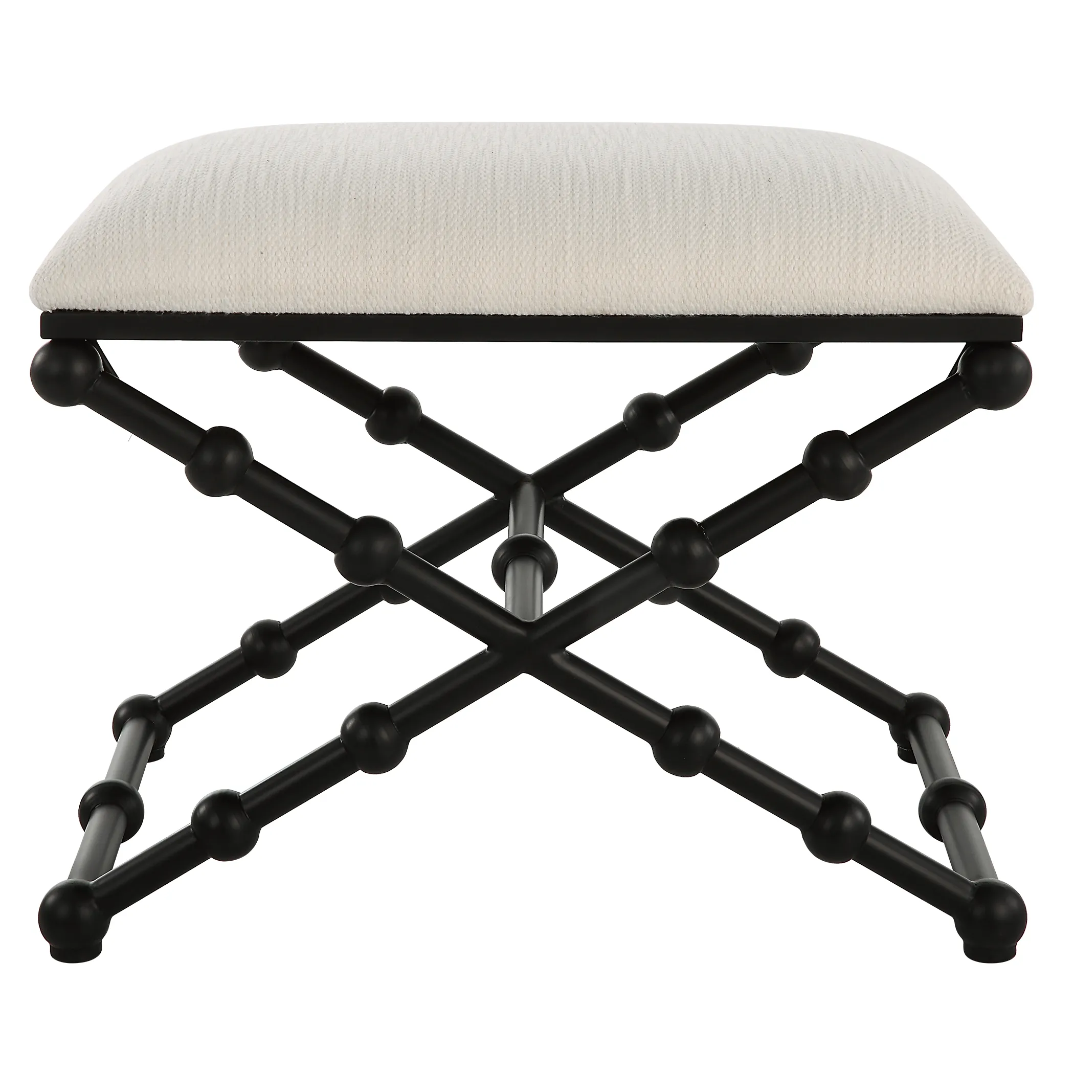 Sophisticated Style Created By The Whimsical Bubble Legs Ensures This Bench To Stand Out In Any Home. Crafted In Iron With A Satin Black Finish Contrasted With A Cushioned Seat In A Crisp White Textured Polyester Fabric With Performance Treatment.