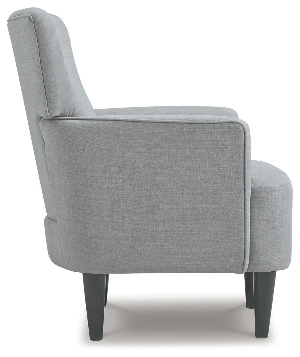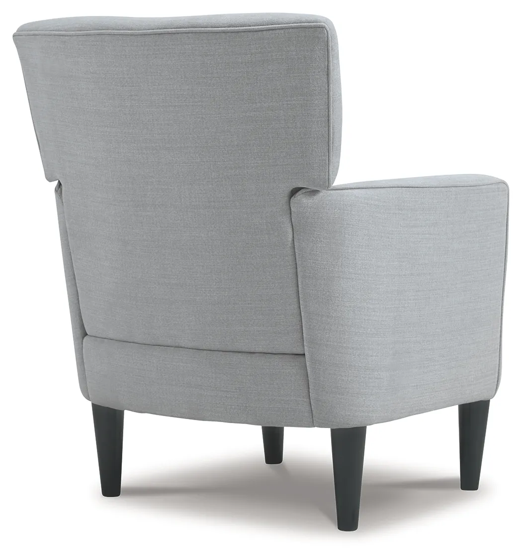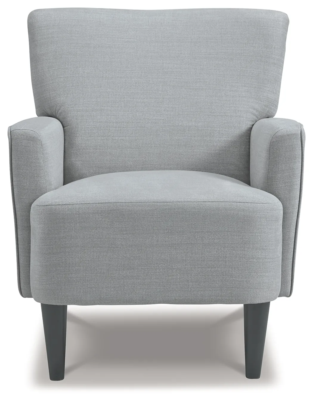 Tailor your space to your own tastes with this accent chair. Track arms and light gray upholstery create a crisp impression. Exposed legs in a black finish add to the air of modernity.