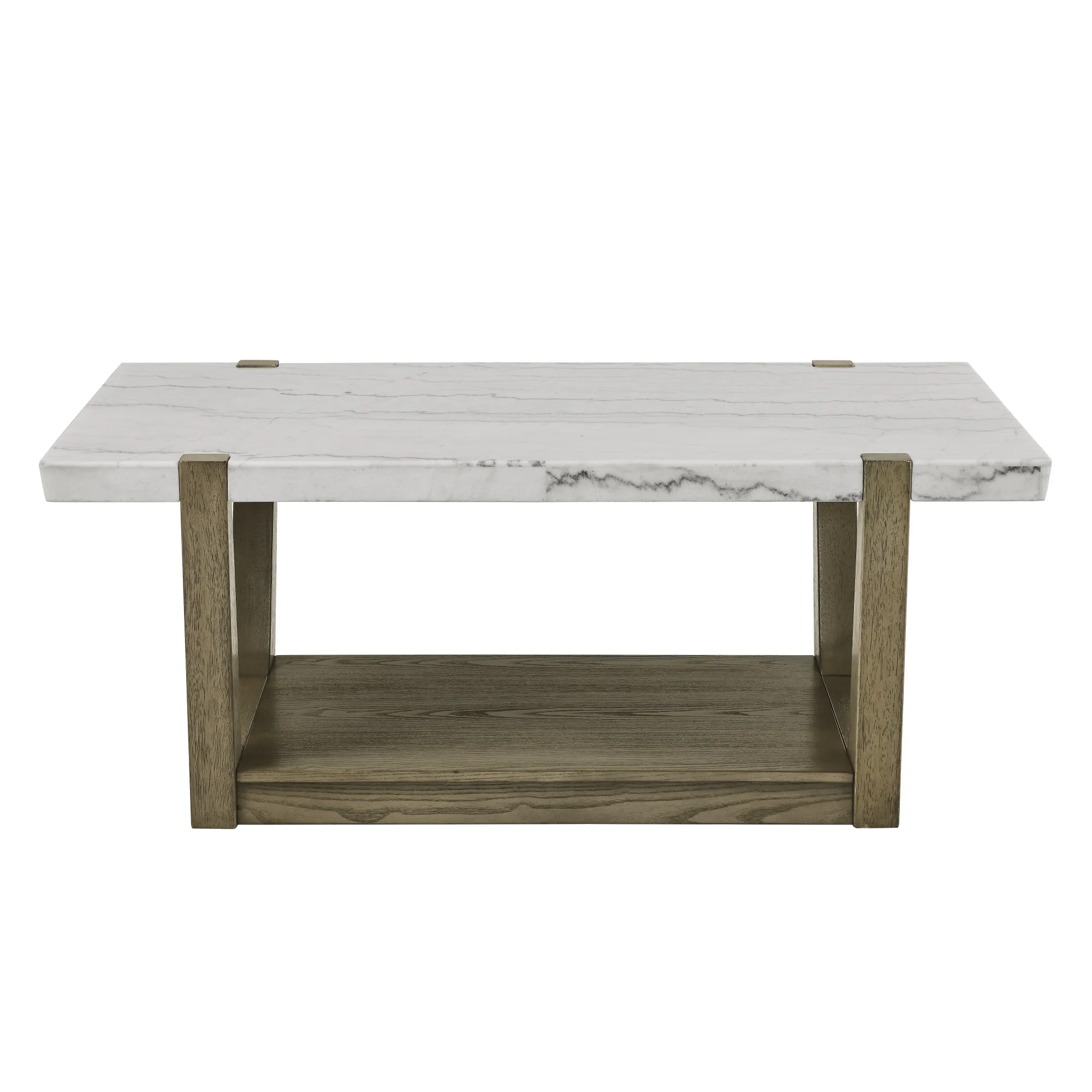 Transform your living room with the Perth Marble Top Table Collection. Crafted with modern flair from ash veneers, hardwood solids, and exquisite white marble tops, each piece exudes sophistication. The weathered sand base from solid wood adds a touch of lightness, while the sturdy legs and clean lines introduce a primitive charm. Functionality is paramount, with built-in shelves on all pieces for convenient storage, perfect for keeping remotes close at hand. Plus, the castered Cocktail Table offers versatility, easily zipping out of the way when needed. Experience the bold yet elegant presentation of this collection, elevating your living space to new heights of style and functionality.
