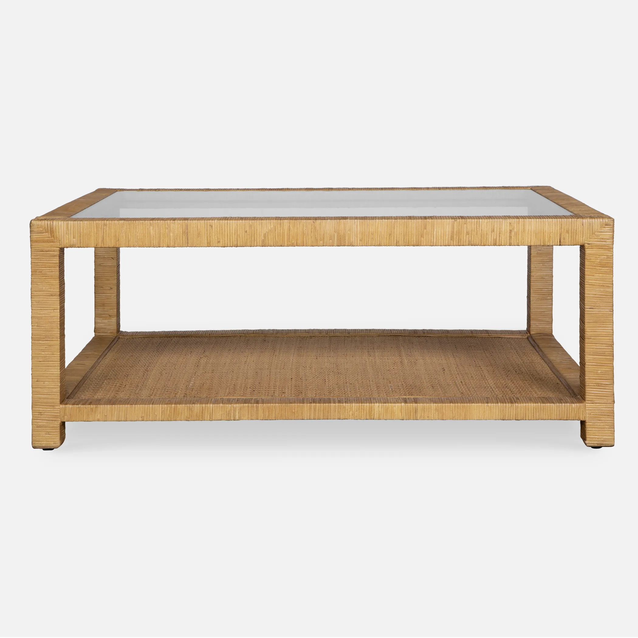 This Casual Coffee Table Offers Generous Display Space And Exudes A Rustic Charm With Its Natural Rattan Wrap Finish, Complemented By A Sleek Glass Top.
