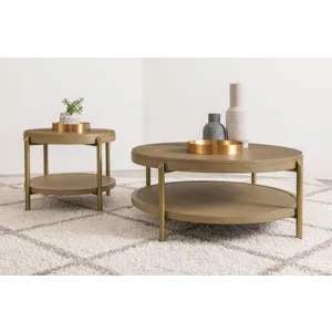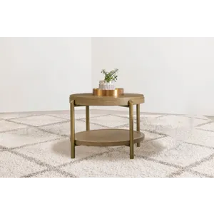 The Arini Round End Side Table With Storage Shelf Sand Wash by Coaster Furniture may be available at MillerHome Furniture & Mattress in the Falls Creek, DuBois and DuBois areas. Please contact us to check availability.