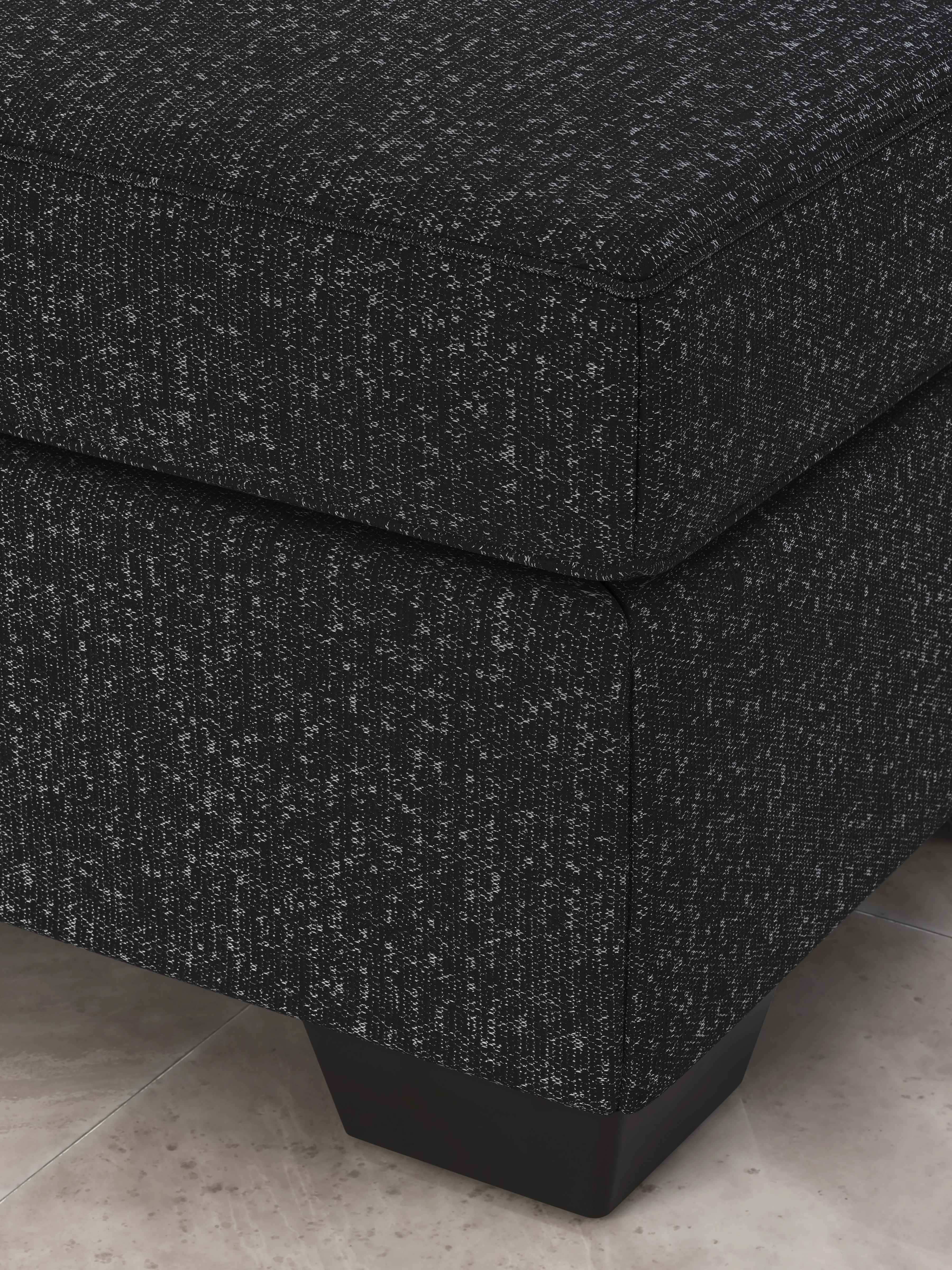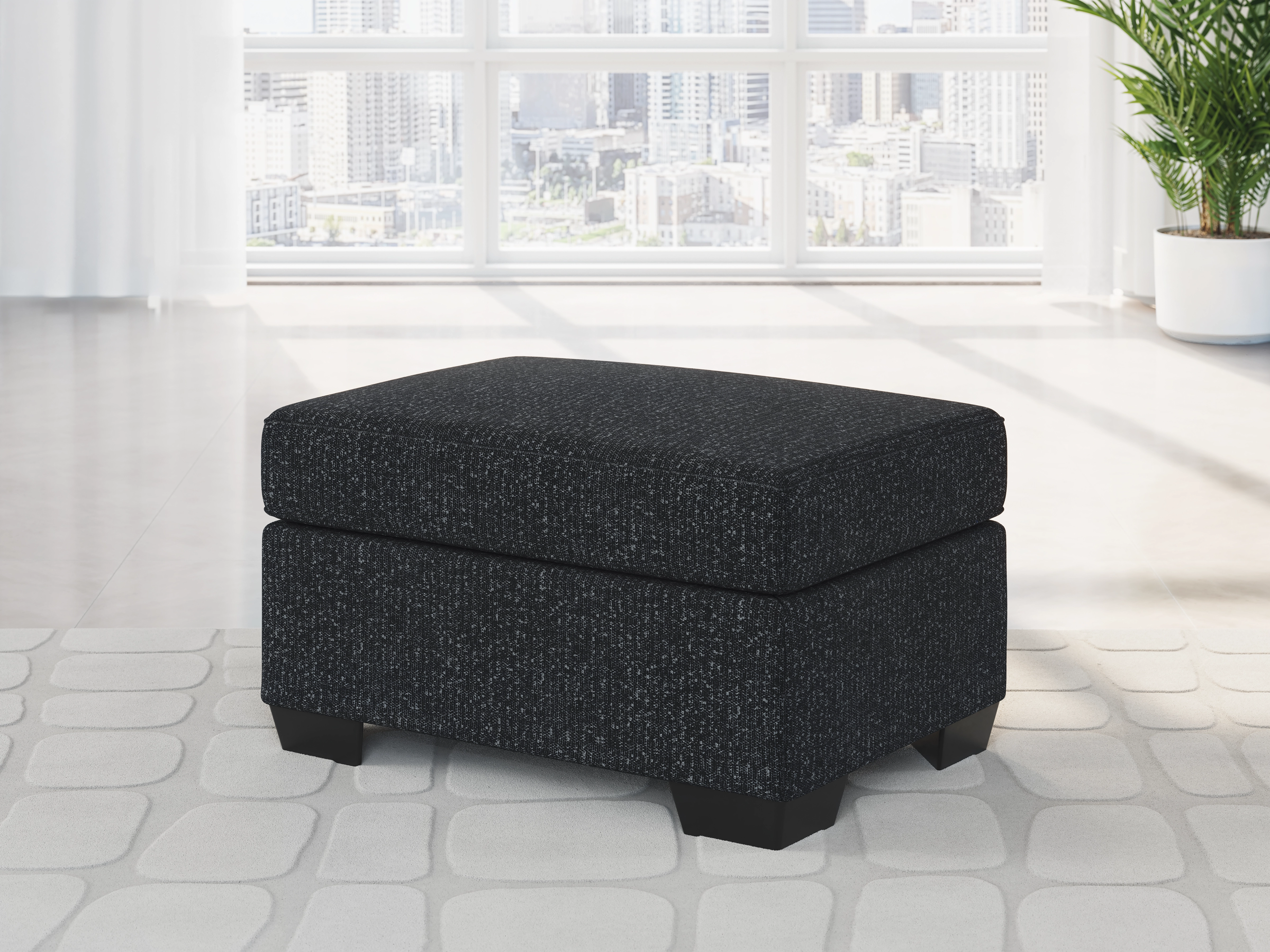 This stunning ottoman leaves a lasting impression. Its cozy cushion and chic coal-colored upholstery are a perfect blend of comfort and contemporary design. The look is simply wow.