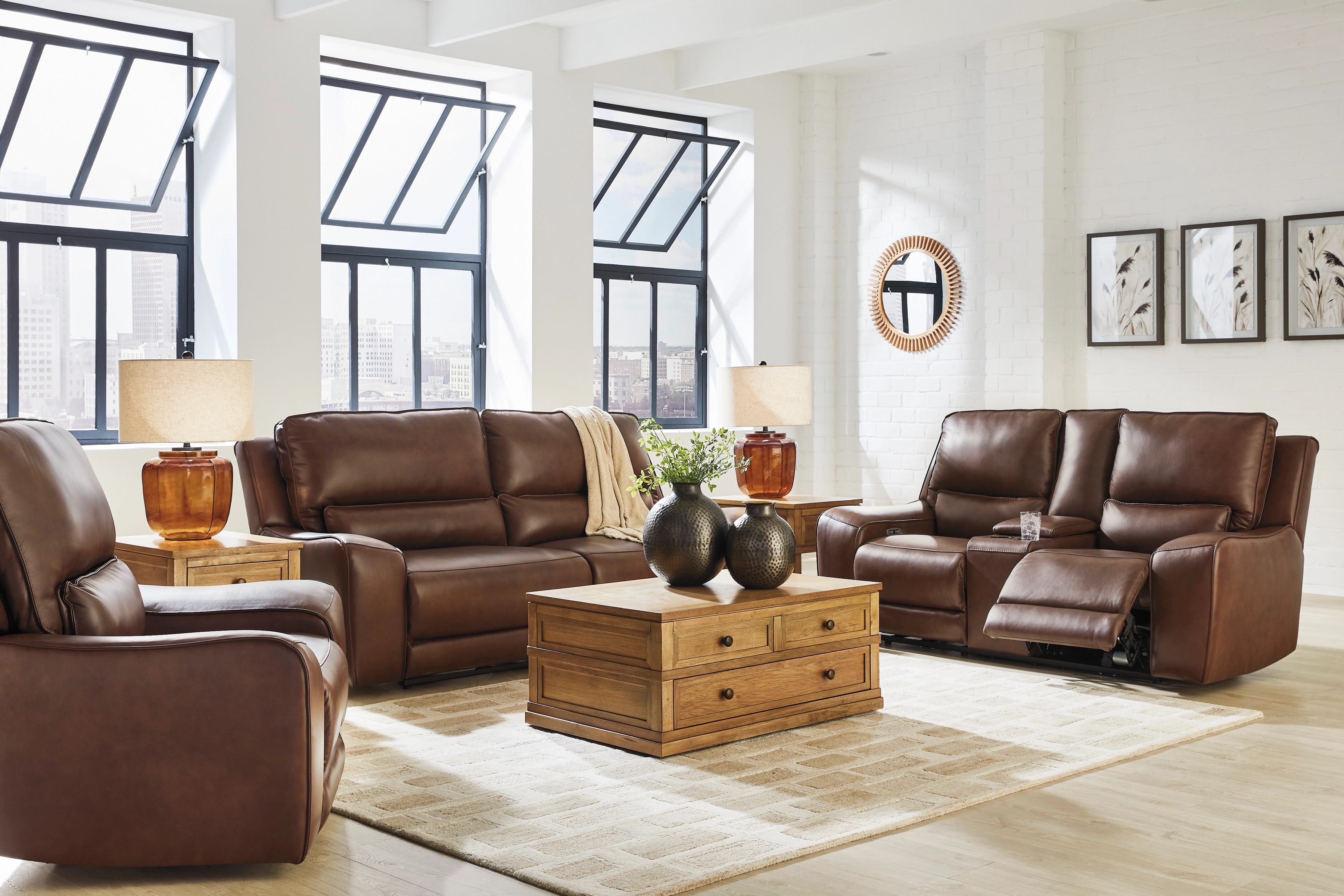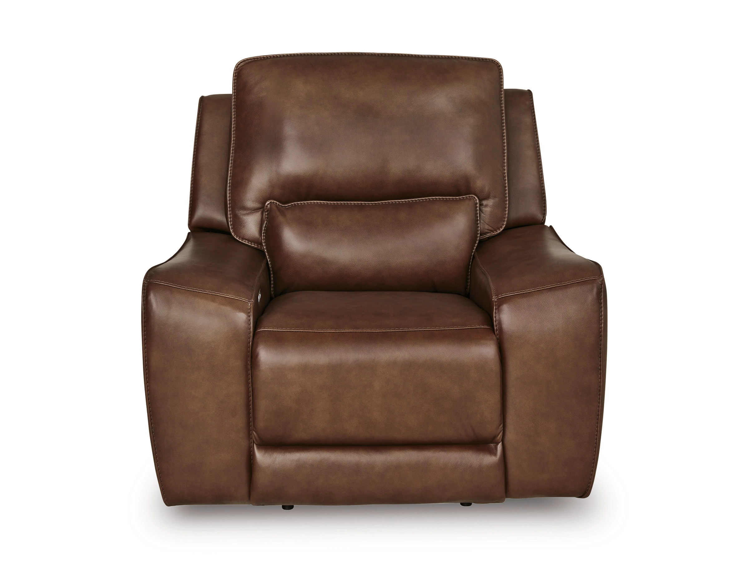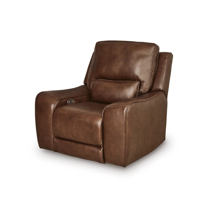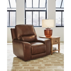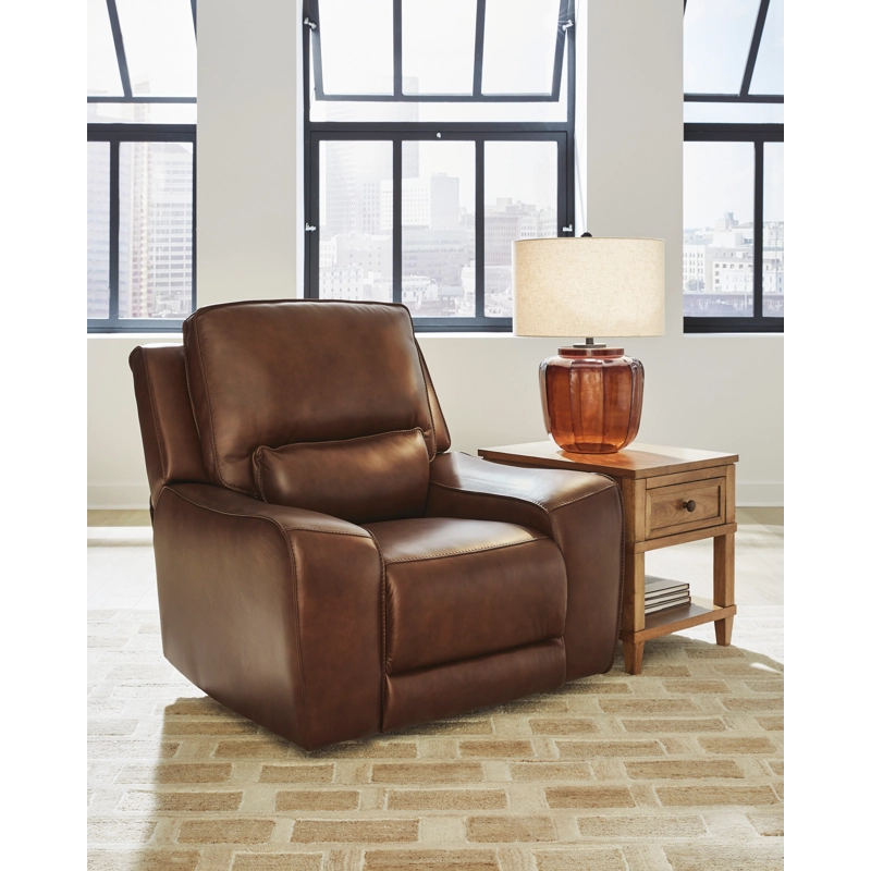 Live and lounge luxuriously. This power recliner brings an ultra-stylish flair to your home’s central hub. Its seating area is wrapped in top grain leather in a sleek neutral color, giving you a trend-right look made all the better with high-quality materials. And with the simple push of a button, you can adjust the headrest or recline to find your ideal comfort position.