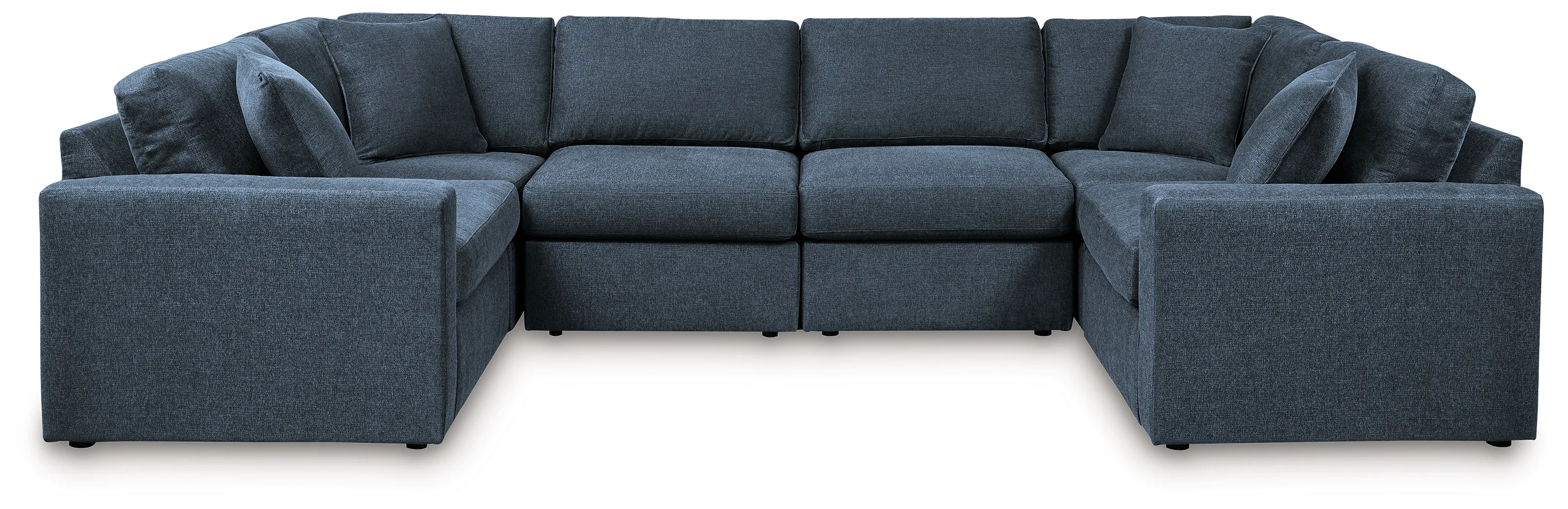 Includes 6 modular pieces: left-arm facing corner chair, 2 armless chairs, 2 wedges and right-arm facing corner chair