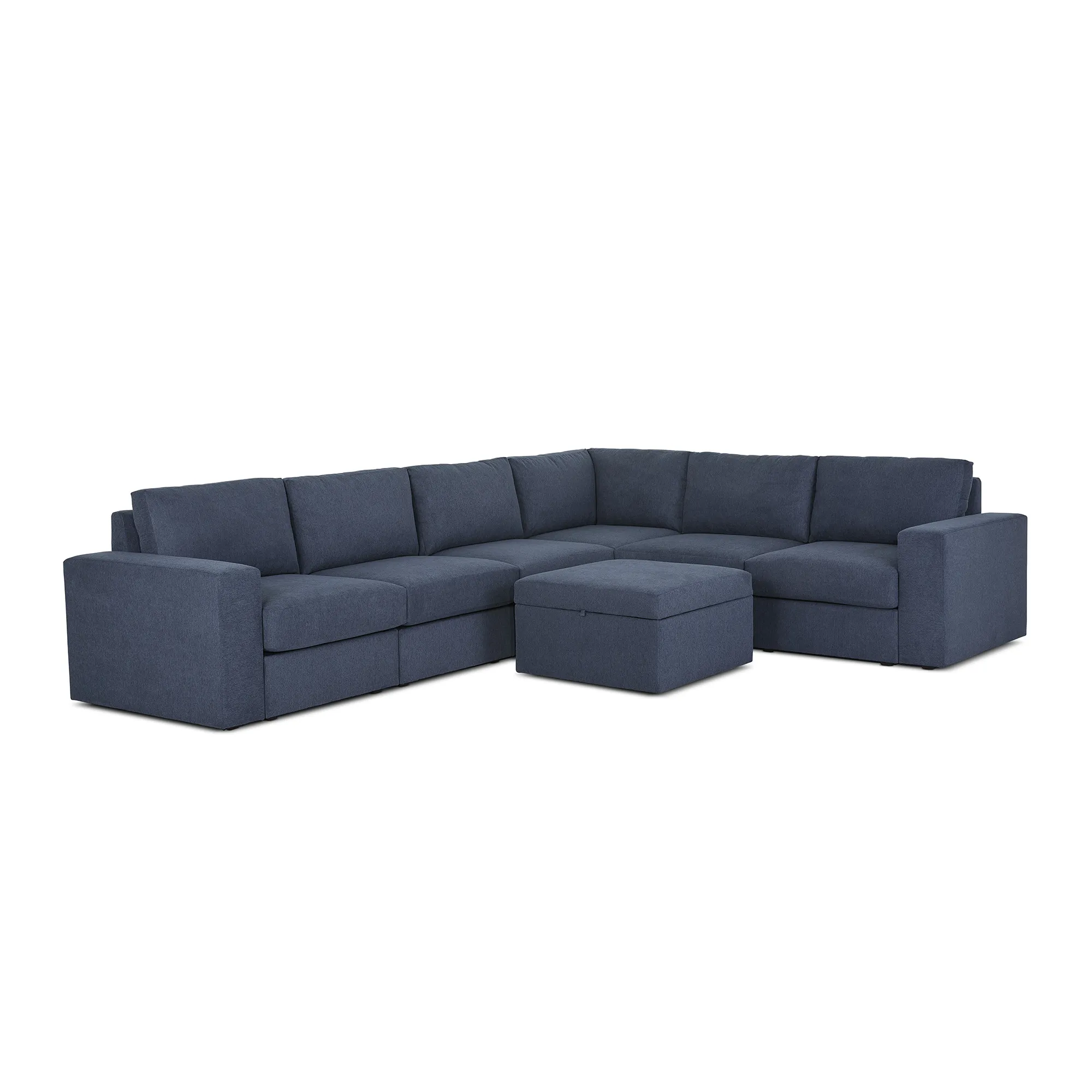 Designed for a lifetime of flexibility, the Flex 6-seat sectional with storage ottoman delivers reconfigurable relaxation for small and large groups. Use the ottoman as a standalone piece or combine with other the other modular components to create the perfect seating arrangement for your space. Built with Blue Steel Spring technology and sustainable, stain-resistant performance fabric, Flex seating provides deep-seated, blissful comfort and long-lasting livability. And assembly is a breeze with a patented J-Bracket™ “no-tool” method that takes minutes, rather than hours.
