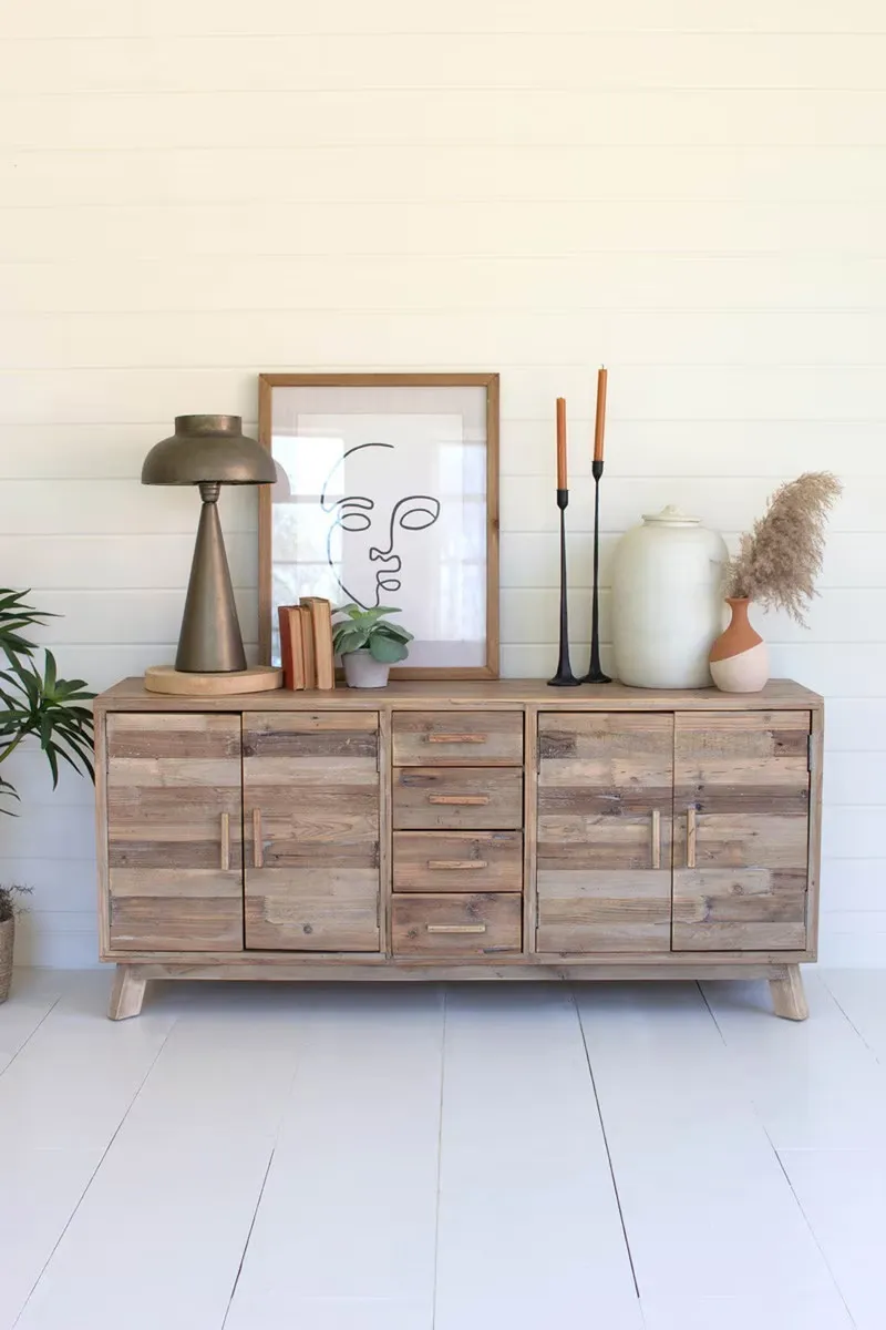 Check out this chest with plenty of storage space if your living room or cabin needs a furniture upgrade. Use it for an entertainment center or bedroom storage. With four doors and four drawers, this chest has plenty of room for your storage needs.